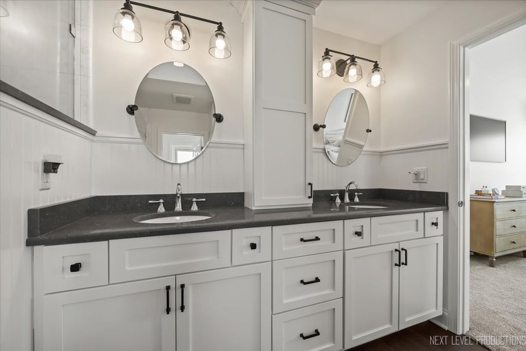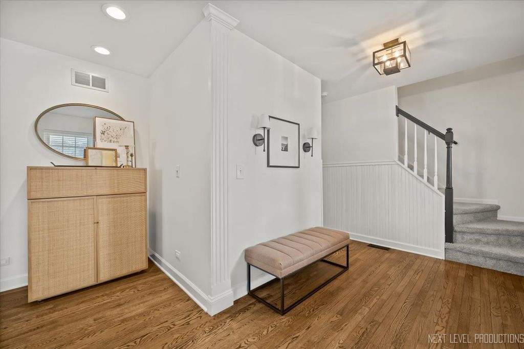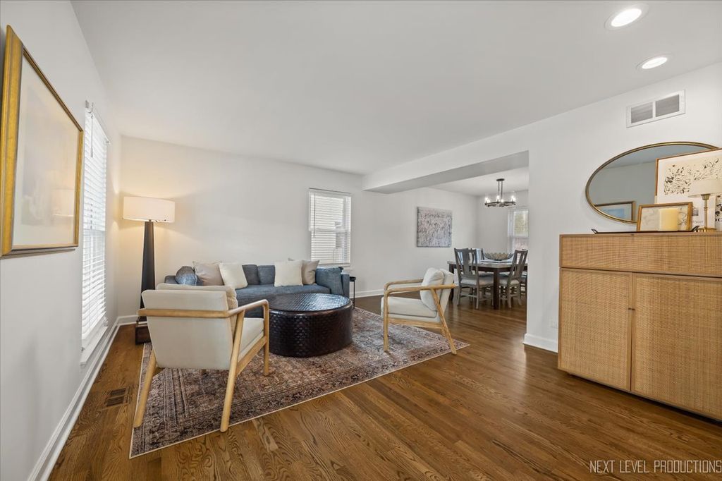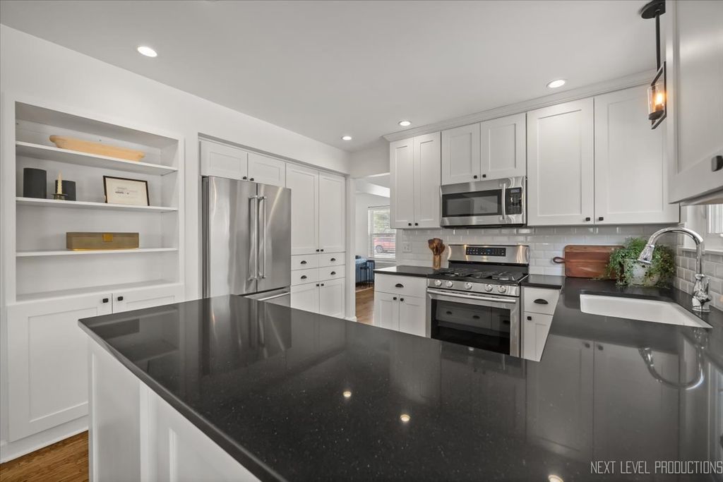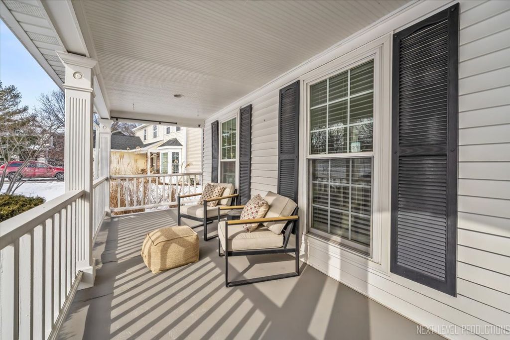Gorgeous, pristine home in impeccable condition, with a fenced private backyard overlooking a wooded setting. Located seconds from shopping, restaurants, and transportation plus close to downtown Batavia. This home offers SO MANY lovely features, including: Oversized picture-perfect front porch ~ Open floor plan ~ Spacious living room and private dining room with gleaming hardwood floors ~ Updated kitchen with built-ins, upgraded white cabinetry, granite counters and stainless appliances ~ Family room has vaulted ceiling and slider opening to custom paver patio and beautiful yard offering privacy on all sides (plus a custom shed perfect for extra storage or outdoor entertaining) ~ Large primary suite with walk-in shower, dual sinks, and walk-in closet ~ Finished basement with rec room and additional bedroom ~ Amazing laundry room with wall of cabinets, shelves and utility sink. Numerous updates/upgrades in this home include custom trim work, new custom closet organizers, new upgraded carpet on stairs and second floor, new epoxy garage floor, new driveway, newly painted, all new light fixtures and ceiling fans and much more! PRIVATE, PEACEFUL AND PERFECT.
