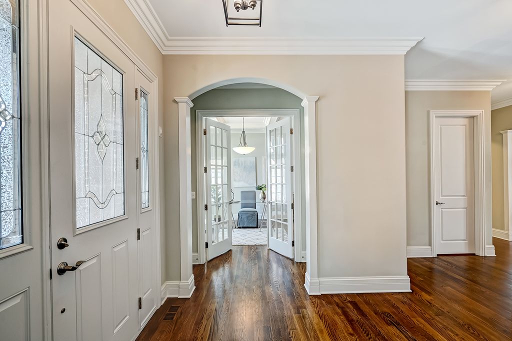 Overlooking the picturesque Prospect Park, this stately solid-brick home blends timeless elegance with modern comforts in an unbeatable location. Step inside and be captivated by the exquisite craftsmanship: extensive multi-piece crown moldings, tall base moldings, soaring 10-foot ceilings, and transom windows that flood the space with natural light. Arched entryways and sophisticated details like simulated divided-light windows create an ambiance of understated luxury throughout. The main level offers both beauty and functionality. A private home office, framed by double French doors, features built-in bookshelves, cabinetry, and a coffered ceiling-a dream setup for remote work or quiet study. The formal living and dining rooms exude refinement, with the dining room showcasing picture-frame wainscoting and a butler's pantry complete with granite counters, ample cabinet space, and a wine cooler. The heart of the home is undoubtedly the gourmet kitchen, designed for both cooking enthusiasts and entertainers. Custom soft-close cabinetry, sleek granite countertops, and a center island with breakfast bar seating set the stage. Top-tier appliances include a SubZero refrigerator, a Wolf double oven with six burners, a griddle, and a built-in warming drawer. The open-concept layout flows seamlessly into the inviting family room, where a stunning stone fireplace serves as the focal point and oversized windows frame serene backyard views. A mudroom with a cubby system keeps life organized, while the first-floor laundry and full bath add convenience. Upstairs, the luxurious primary suite offers a private retreat. Wake up to the tranquility of a covered balcony overlooking the backyard-perfect for sipping your morning coffee or unwinding at sunset. The spa-like ensuite features dual vanities, a whirlpool tub, and a separate shower, while the custom walk-in closet caters to your storage needs. Three additional bedrooms, each with its own ensuite bath, ensure everyone has their own comfortable space. A cozy loft area, complete with another private balcony, overlooks serene Prospect Park and offers a quiet escape. The finished lower level, completed in 2020, is an entertainer's dream. Brightened by above-grade privacy glass windows, this space includes a spacious recreation area with a second stone fireplace, in-ceiling speakers, and a stylish wet bar. A fifth bedroom and full bathroom make this level ideal for guests or multi-generational living. Updates include a freshly painted exterior (2025), a new passive radon mitigation system (2025), a new sump pump (2025), and a new water heater (2022)-all ensuring peace of mind for years to come. Tucked into a prime location within award-winning school districts, this home is just a short walk to Prospect Elementary and Clarendon Hills Middle School, with Hinsdale Central High School only minutes away. Enjoy the convenience of being close to the Hinsdale Golf Club, downtown Clarendon Hills, the Metra station, and easy access to Route 83. This is more than a home-it's a lifestyle. Don't miss your chance to experience luxurious living in an idyllic setting.