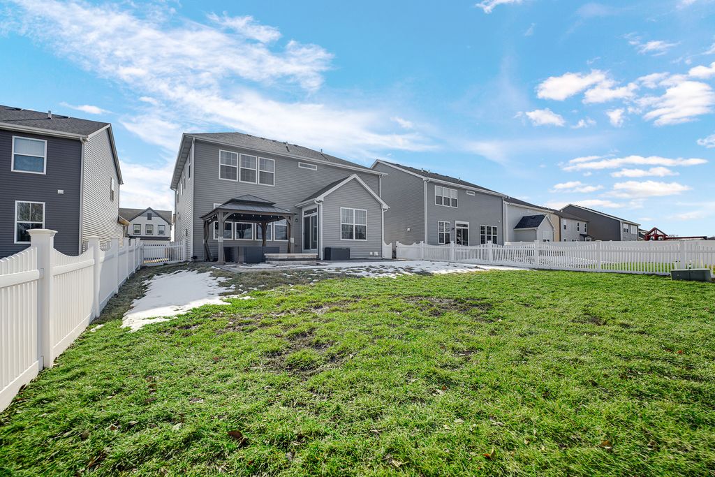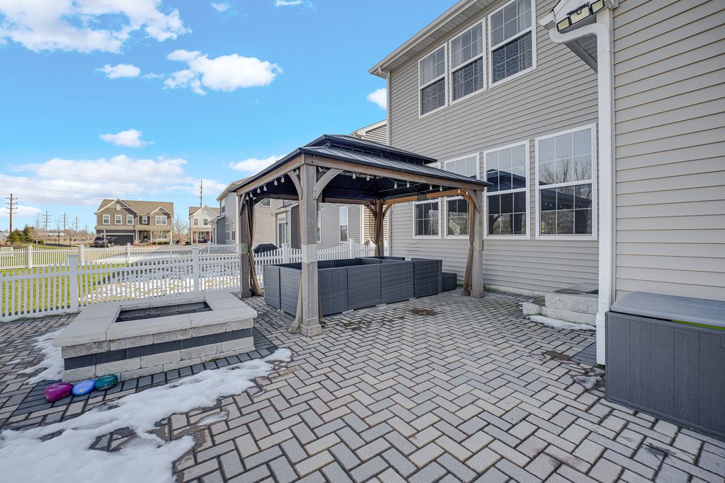 This beautiful home in South Pointe Elgin, built in 2020 has EVERTHING! 5 bedrooms, 3 bathrooms, full basement, 2 car garage, outdoor brick patio, built-in firepit with a gazebo! It has a HUGE fenced yard! 2,800 sqft. of BEAUTIFUL living! Open kitchen with 42" cabinets, quartz counters, center island, walk in pantry, with stainless steel appliances, 9ft ceilings & a gas fireplace. See I told you; EVERYTHING! In addition to ALL OF THAT! This home offers so much flex space that fit every lifestyle! Second floor open loft, first floor bed and bath, full size basement and Its a SMART home with Technology already built in! Endless possibilities in an EXCELLENT school district!