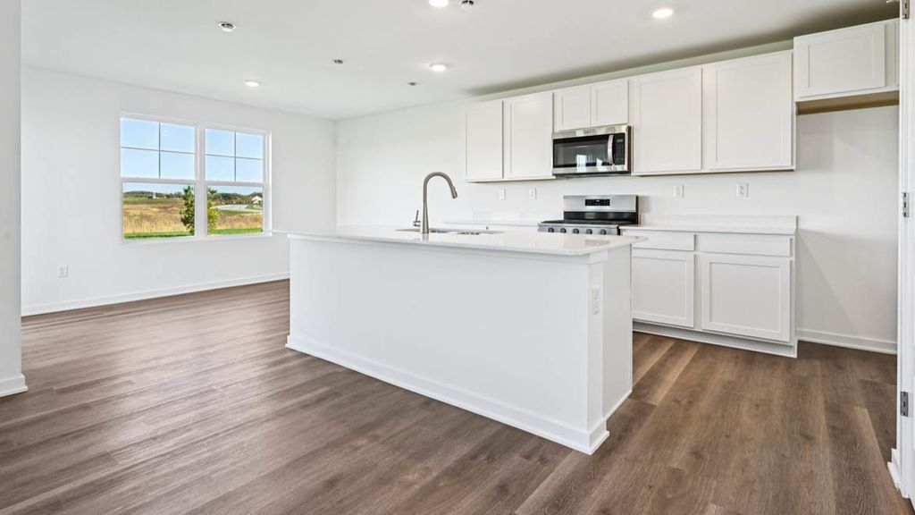 Envision yourself at 1248 Linden Terrace, Hampshire, Illinois, a beautiful new home in our Prairie Ridge community. This two-story home will be ready for a spring move-in. This home site includes a fully sodded yard. This Meridian plan offers 1,847 square feet of living space with 4 bedrooms, and 2.5 baths. Entertaining will be easy in this open-concept kitchen and family room layout with a large island with an overhang for stools. Additionally, the kitchen features a walk-in pantry, modern stainless-steel appliances, quartz countertops, and easy -to-maintain luxury vinyl plank flooring. Enjoy your private get away with your large primary bedroom and ensuite bathroom with a raised height dual sink, quartz top vanity, and walk-in shower with fiberglass surround and clear shower doors. Convenient walk-in laundry room,3 additional bedrooms with a full second bath with dual vanity and a linen closet complete the second floor. All Chicago homes include our America's Smart Home Technology. Photos are of similar home; actual home may vary.
