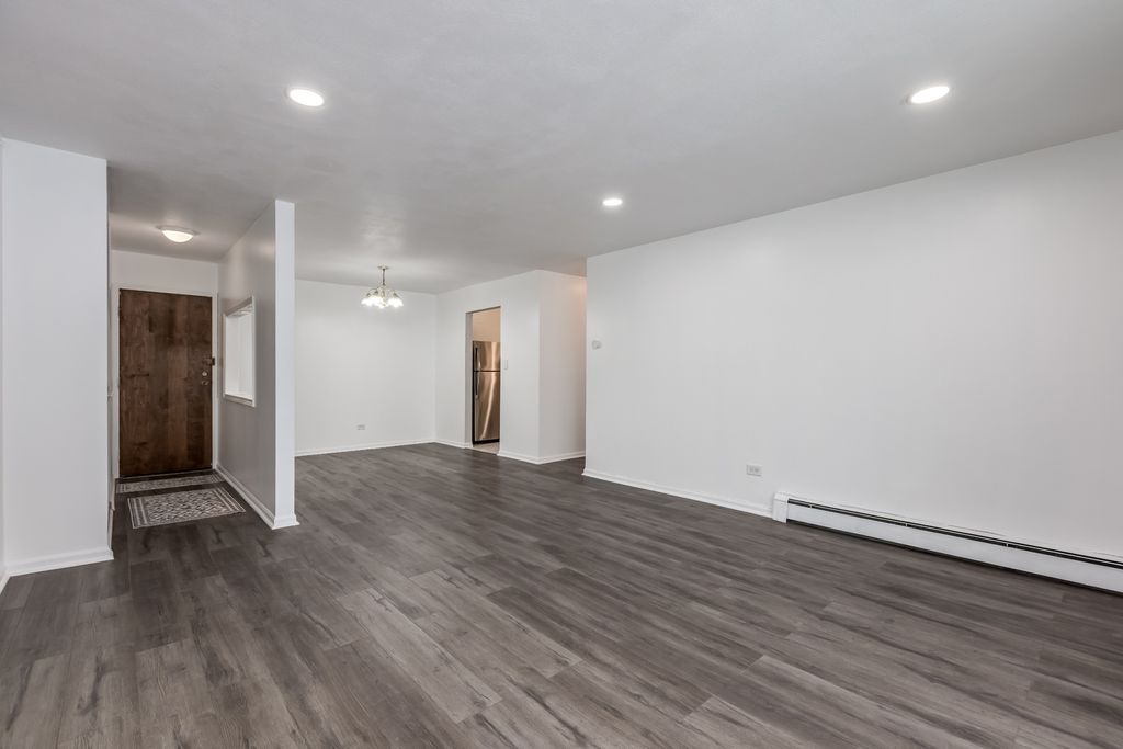 Well-maintained and recently renovated first-floor condo in Morton Grove featuring two bedrooms and two full baths. The home offers an open, comfortable layout with a large living area that opens directly to a private patio. A dedicated dining space sits just off the living room, ideal for everyday meals or entertaining. The updated kitchen was renovated and includes ample cabinetry along with a pantry for additional storage. The primary suite includes its own full bath and dual closets. Laundry is conveniently located on the same level as the unit. Additional highlights include one-car garage parking, abundant guest parking, and a private storage room located just steps away. Positioned close to the community pool, this property offers both convenience and opportunity for personalization.
