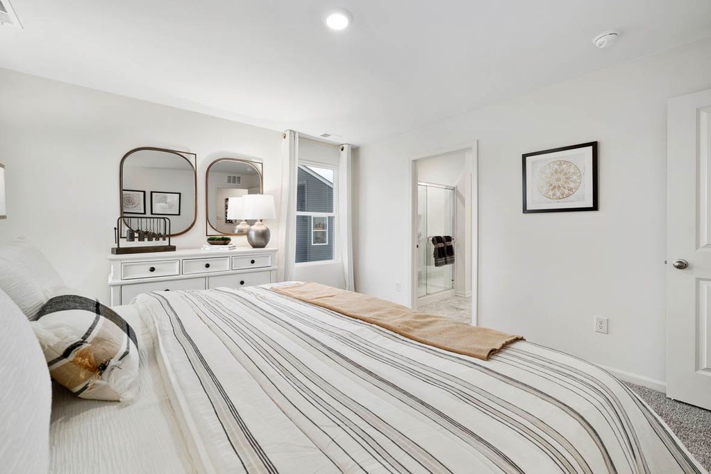 Envision yourself at 127 Cornerstone Crossing, Hampshire, Illinois, a beautiful new home in our Prairie Ridge community. This two-story home will be ready for a spring move-in. This home site includes a fully sodded yard. This Meridian plan offers 1,847 square feet of living space with 4 bedrooms, and 2.5 baths. Entertaining will be easy in this open-concept kitchen and family room layout with a large island with an overhang for stools. Additionally, the kitchen features a walk-in pantry, modern stainless-steel appliances, quartz countertops, and easy -to-maintain luxury vinyl plank flooring. Enjoy your private get away with your large primary bedroom and ensuite bathroom with a raised height dual sink, quartz top vanity, and walk-in shower with fiberglass surround and clear shower doors. Convenient walk-in laundry room,3 additional bedrooms with a full second bath with dual vanity and a linen closet complete the second floor. All Chicago homes include our America's Smart Home Technology. Photos are of similar home; actual home may vary.