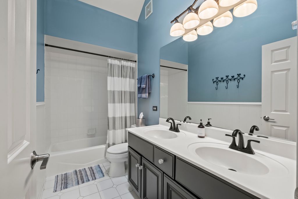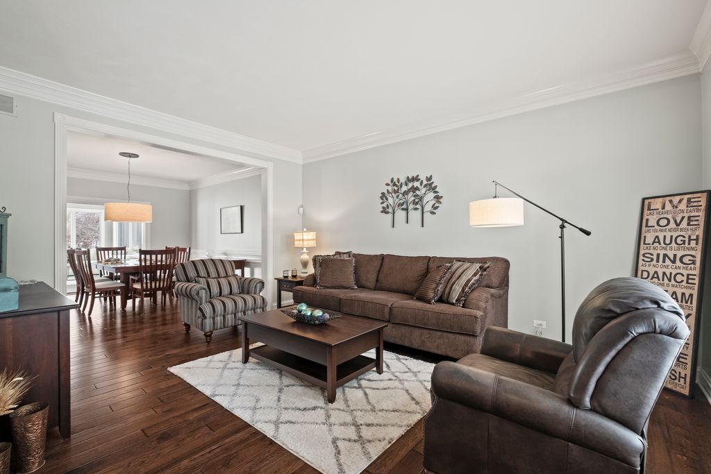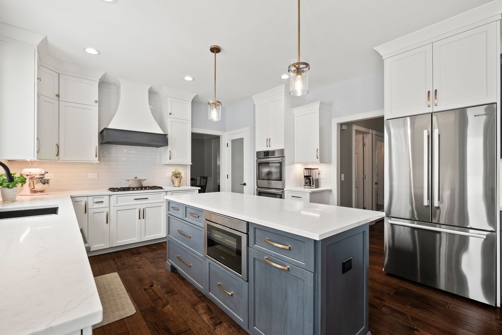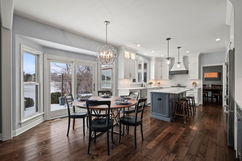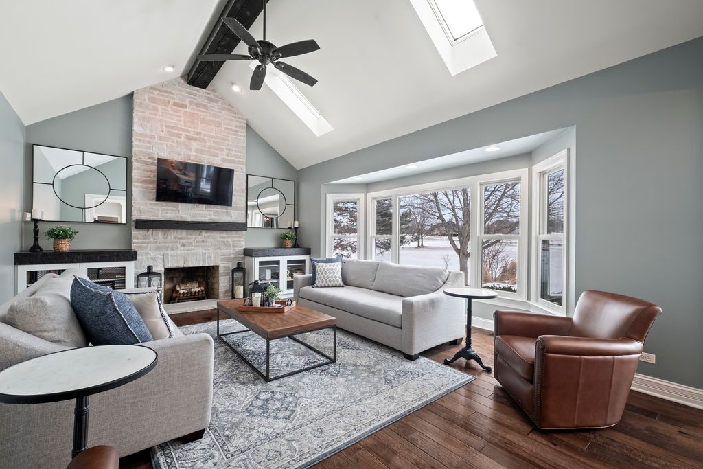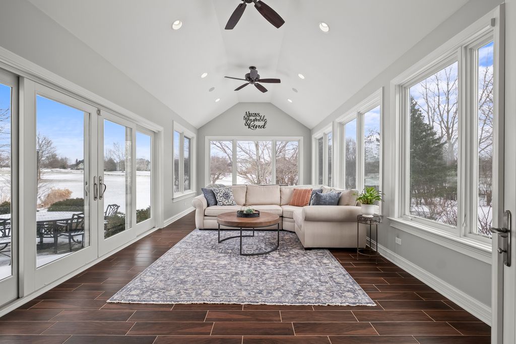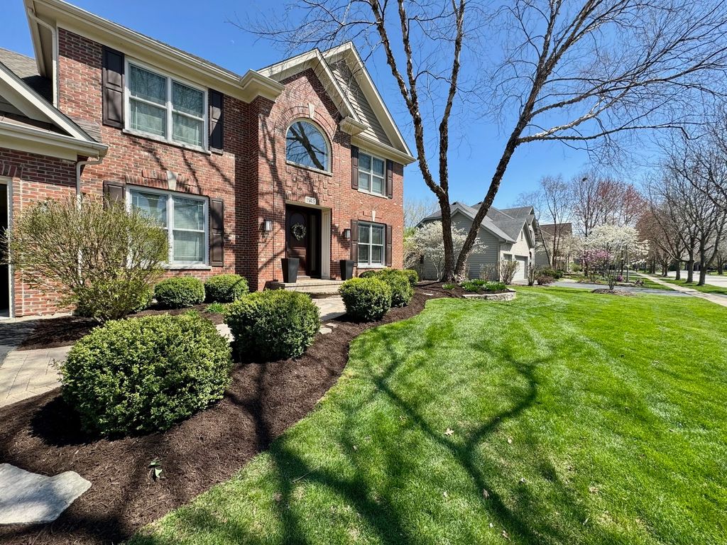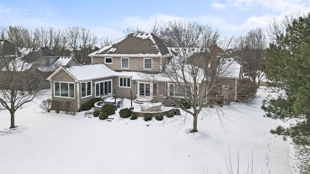 Multiple offers received. Best and final due by 9pm Saturday Jan 31. Nestled in a superior cul-de-sac location within the prestigious Eagle Brook Subdivision, this stunning residence at 1145 Keim Court offers a perfect blend of sophisticated design and modern luxury. From the moment you follow the brick paver walkway to the gorgeous front door and step into the soaring foyer, you'll know you've found something truly special. The main level is designed for both productivity and elegant entertaining featuring a home office and numerous gathering areas. The recently renovated chef's kitchen (2025) is a masterpiece, boasting custom cabinetry, a massive island topped with premium quartz, and a suite of high-end stainless steel Bosch appliances. For the ultimate host, the kitchen also features a dedicated bar area complete with a beverage refrigerator, making it the ideal hub for entertaining. The kitchen flows seamlessly into a magnificent family room, where vaulted ceilings and skylights flood the space with natural light. This inviting room is anchored by a stunning fireplace, flanked by custom built-ins and topped with a beautiful, beamed ceiling. The crown jewel of the main floor is the incredible four-season sunroom addition (2016). Wrapped in windows on three sides, this space offers panoramic views of the 2nd fairway and features heated floors for year-round comfort. The second floor hosts four spacious bedrooms, including a primary suite designed for relaxation. The updated primary bath features a large double-sink vanity, a deep soaking tub, a sleek glass-enclosed shower, and a private water closet. The 2021 finished basement is a destination of its own. It features a professional-grade workout room with a wall of mirrors and a stylish glass barn door. The custom wet bar is an entertainer's dream, complete with quartz counters, custom cabinetry, and two beverage refrigerators. After your workout or a round of golf, relax in the expansive living area with custom built-ins and plenty of room for an oversized sectional. Step outside from either the kitchen or sunroom onto the expansive brick paver patio. Whether you are grilling, dining, or hosting friends, the backdrop of the lush golf course provides an unmatched atmosphere.