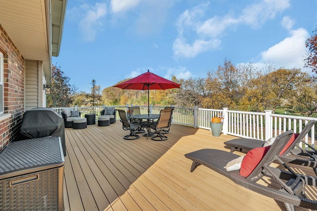 Situated in the highly desirable Bluestone Bay subdivision of New Lenox, this exceptional 4 bedroom, 3.5 bath residence delivers custom-quality craftsmanship at an incredible value-truly one of the finest homes in the community. Thoughtfully redesigned and meticulously maintained, it offers elevated living with none of the work left to do. Inside, the home showcases newer carpeting & fresh interior paint (February 2025), and sun-filled spaces framed by oversized windows. A striking custom wood ceiling installed in the living room (May 2025) adds architectural depth, while all interior and exterior lighting was replaced in March 2025, enhancing the home's warm, modern aesthetic. The fully finished lower level is ideal for entertaining, complete with a refined bar area and a spa-inspired steam shower-perfect for hosting or relaxing in style. Outdoors, the property transforms into a private retreat. Highlights include an expansive deck, covered patio, built-in outdoor bar, fire pit, wraparound porch, and a generous backyard designed for both entertaining and everyday enjoyment. Recent upgrades include enhanced landscape lighting (June 2025), a new irrigation system (May 2025), and a brand-new hot tub (January 2025)-creating a resort-like atmosphere year-round. A three-car garage provides ample space for vehicles and storage. Conveniently located in the heart of New Lenox surrounded by shopping, parks, the Metra, restaurants and Lincolnway Central HS. This move-in-ready property stands out as one of the neighborhood's most impressive opportunities. Schedule your private showing today; this one won't last long!