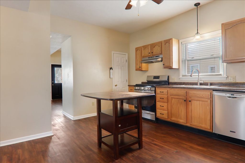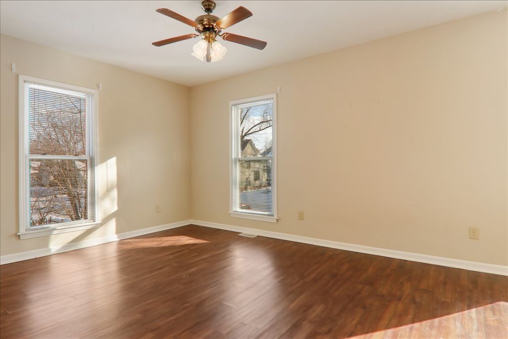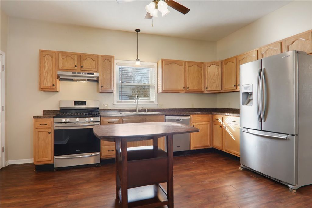 Wonderful and spacious four bedroom, two full bathroom, with an oversized one car garage home close to it all! This is the one you've been waiting for. Main level has all hard surface flooring, spacious room sizes, plus a kitchen with all its appliances staying. Main level also has a large bedroom plus a full bathroom. Heading upstairs, you will discover three more bedrooms plus the second full bathroom. Each bedroom has generous closets and overhead lighting with fans. The usable and dry basement features a staying washer and dryer, high ceilings and plenty of storage space. Enjoy the fully fenced backyard with a super storage shed that remains too.
