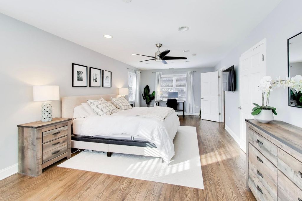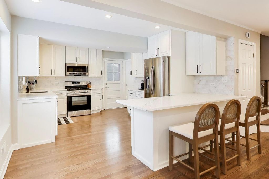 Live the modern, walk to town lifestyle you've been craving in the heart of the highly sought-after Scarsdale neighborhood! Steps to some of the most sought after schools in the state: Dryden Elementary, South Middle, and Prospect High School, this pristine, sun-drenched home blends thoughtful updates with effortless livability, truly move-in ready! Step inside to a bright, open layout today's buyer's desire. Expansive main living areas flow seamlessly into the beautifully updated kitchen, where NEW hardwood floors, crisp white cabinetry, stainless steel appliances, quartz countertops, and abundant storage create a space that is both functional and stunning. The perfect setup for everyday living and effortless entertaining. A spacious addition enhances the home's airy feel and overlooks the sprawling, fully fenced backyard, offering endless room for play, gatherings, or summer lounging. Upstairs, the primary suite is a true retreat drenched in natural light. Host your entire wardrobe in the huge, custom walk-in closet, and unwind in the luxurious ensuite with dual sink vanity and walk-in shower. Two additional generously sized bedrooms offer ample closet space. Thoughtfully designed built-in desk nook tucked under the stairs is ideal for working from home or homework. A few more steps up, discover an incredible den space, offering flexibility as a 4th bedroom, playroom, or exercise space. All of this and you're minutes from vibrant downtown Arlington Heights, dining, shopping, parks, the Metra, and more! Pristine condition. Bright, open living. Unbeatable location. This is the one you've been waiting for. Welcome home!