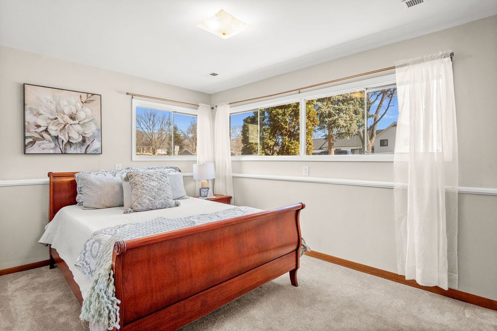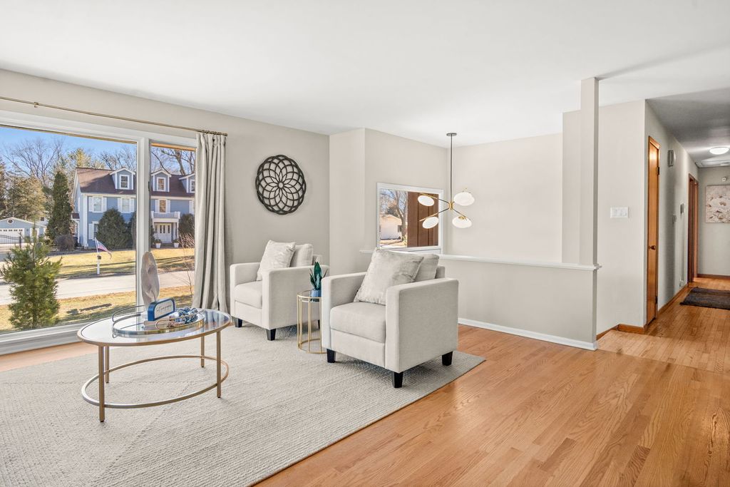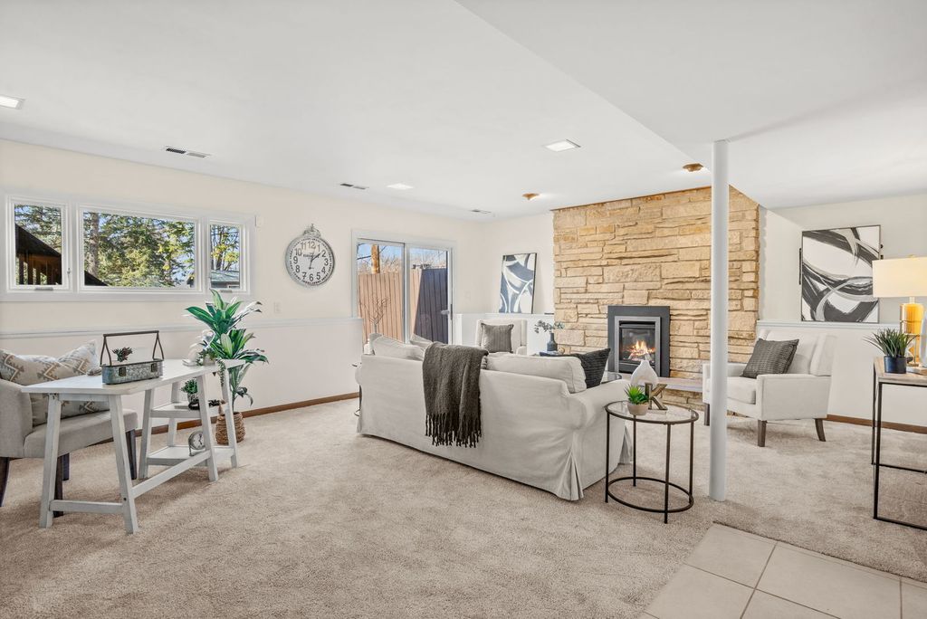 Downtown Naperville! Well sought-after Lawn Meadow neighborhood in the heart of Naperville, this spacious 4BR/2BA brick and wood raised ranch sits on a rare half-acre interior lot with mature trees, thoughtful landscaping, and peaceful wooded views, offering over 2,400 square feet of beautifully updated living space. Fresh interior paint and hardwood flooring in the living and dining rooms (2023) create a warm, welcoming feel, while the eat-in kitchen features a newer refrigerator (2023) along with a dishwasher and microwave added in 2022. Three generous bedrooms are located on the main level, including the primary suite with a private bath and tile surround shower. The lower level is designed for comfort and entertaining, featuring new carpet on the basement and front stairs (2025), a remodeled basement bath (2025), a fourth bedroom, and a dedicated laundry room. The inviting family room showcases a dramatic floor-to-ceiling stone fireplace with a gas insert installed in 2022, and a sliding door that leads directly to the patio for seamless indoor-outdoor living. The fully fenced backyard (new in 2024) also includes a deck and shed, creating plenty of space to relax or host gatherings. Major mechanical updates include AC and water heater approximately 5 to 7 years old, roof and furnace approximately 9 to 12 years old, providing added peace of mind. All of this is in a prime, walkable location near downtown Naperville, less than a mile to the Naperville Riverwalk and close to award-winning Naperville Central High School, making this home an exceptional blend of space, updates, and lifestyle.
