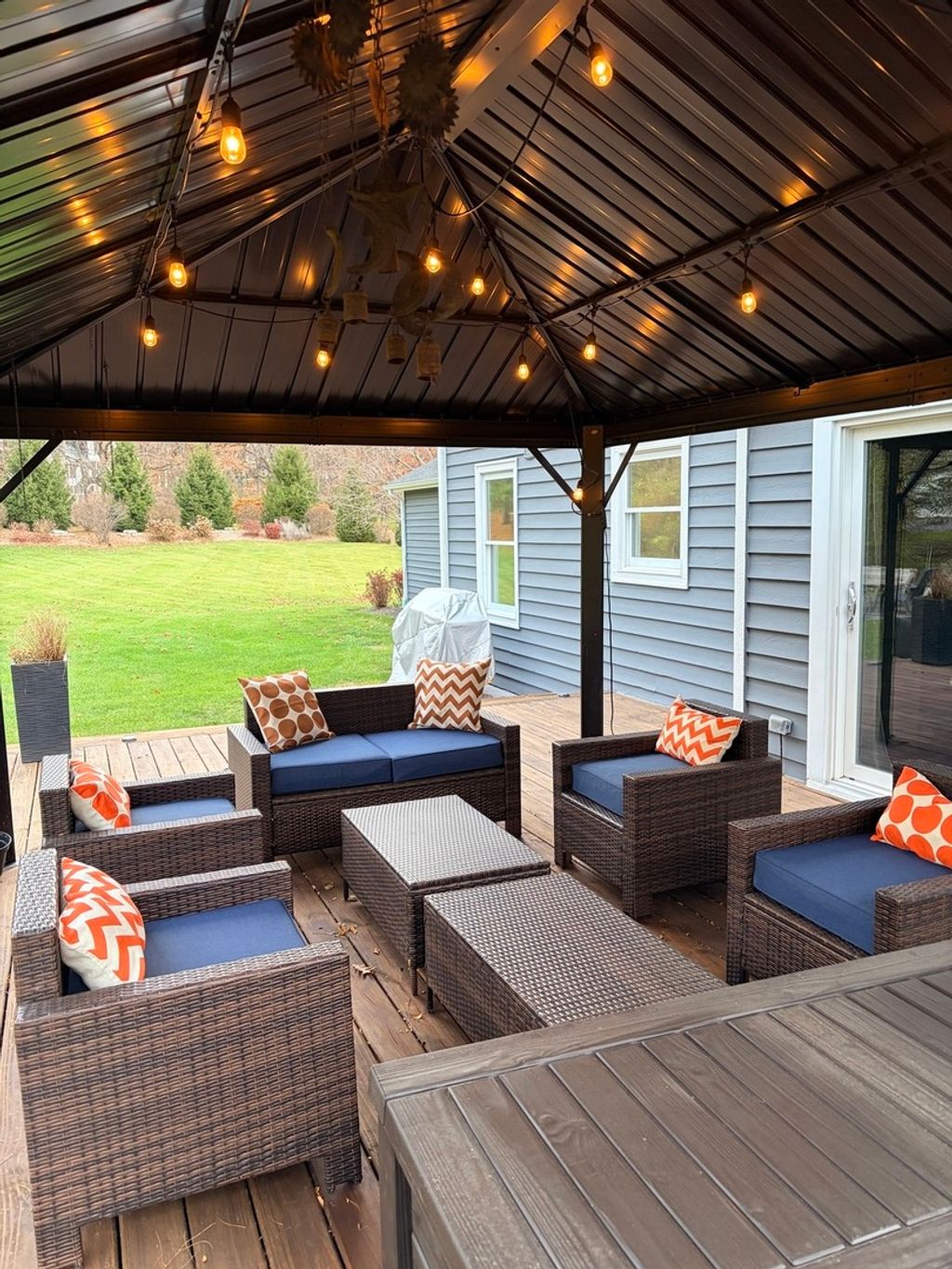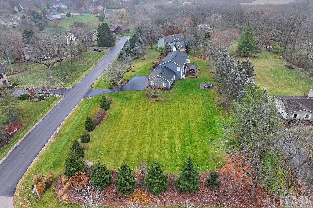Spacious two-story home on 1.14 acres of beautiful views from every window offers 5 bedrooms and 3.5 baths with thoughtful updates throughout. A refined kitchen design with clean lines and warm finishes include a large center island, deep drawers that balance stye and function. Hardwood floors run throughout the first floor, which also includes both a den and a separate office-ideal for today's telecommuters. The primary suite is a true retreat, highlighted by a fireplace and a beautifully updated bath with a large walk-in shower and a well-designed dressing room that emphasizes style and organization. The professionally finished basement adds exceptional flexibility with a wet bar, theater/rec room (theater equipment included), exercise/yoga room, bedroom, full bath, and ample storage-making it well suited for a multigenerational living arrangement. This home has been maintained with the utmost of care. Outdoor amenities include a fabulous front porch, firepit, and deck with gazebo, creating a enjoyable outdoor space perfect for entertaining..