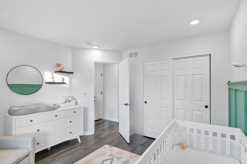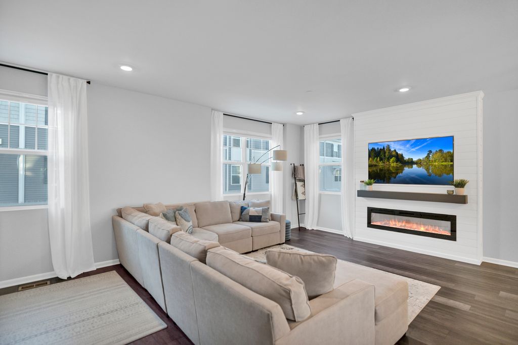 Located in the Meadow Square subdivision, this three-level townhouse delivers a smart, flexible layout paired with extensive custom upgrades throughout. The entry level features a large foyer with ample storage and a sunlit recreation space with French doors, offering versatility for a home office, workout area, or additional living space. The attached garage includes a dedicated 30-amp electrical circuit suitable for EV charging. The main living floor is designed for seamless everyday living and entertaining, with an open family room centered around a custom-built entertainment center and electric fireplace. The kitchen anchors the space with quartz countertops, full-height 42" white cabinetry with crown moulding, stainless steel appliances, a breakfast bar, an oversized island with sink, and a generously sized pantry. Luxury vinyl plank flooring and recessed lighting continue throughout all three levels. A private balcony located just off the kitchen and positioned above the two-car garage provides an ideal outdoor retreat for relaxing and entertaining. The upper level includes three well-proportioned bedrooms. The primary suite features a private bathroom with dual sinks, quartz counters, a separate shower, and a walk-in closet outfitted with custom shelving. Additional custom storage includes new closets under the first floor stairs and adjacent to the primary shower - features not found in comparable units. Two additional bedrooms with custom closet systems share a full hallway bathroom, along with a linen closet and an upgraded laundry area with built-in shelving. As an end unit, the home offers added privacy and abundant natural light throughout. The location provides convenient access to nearby shopping, parks, libraries, and schools, with close proximity to Woodfield Mall, downtown Arlington Heights, Metra stations, and major expressways including I-53, I-90, and I-290.