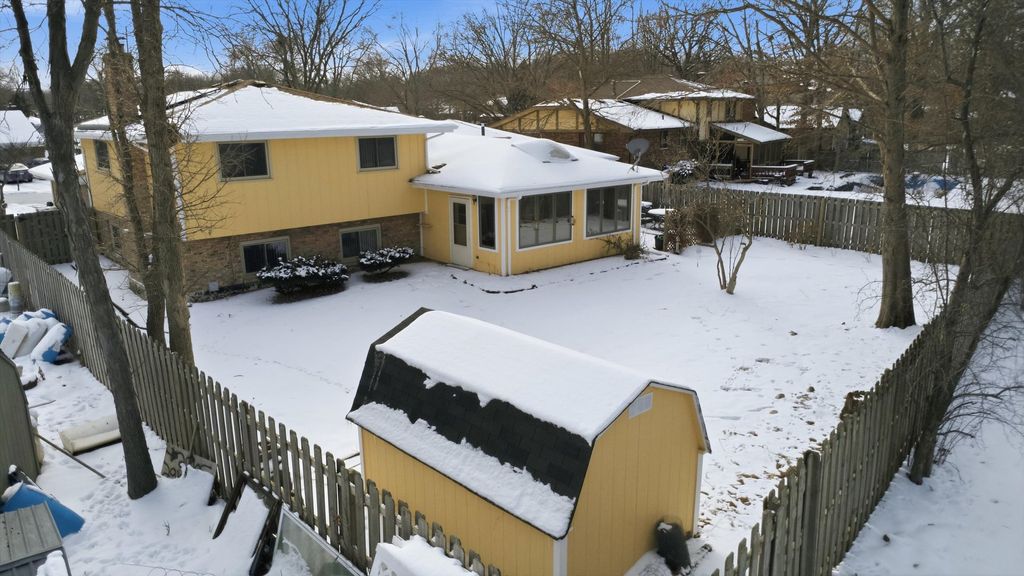 MOVE-IN READY QUAD LEVEL with 3 SEASON ROOM & FENCED IN YARD in Lincolnshire East! Spread out on FOUR LEVELS of living space in this 4 bedroom THREE bath split level with partially finished basement! Featuring an L-shaped living room/dining room area w/HARDWOOD floors. GRANITE counters & updated black STAINLESS appliances, just 3 years old! Sliders off the kitchen lead to a GENEROUSLY sized 3-season room with access to the outdoor HOT TUB & fully fenced in yard w/storage shed. Primary suite boasts HW laminate flooring, double closets & ensuite bathroom w/shower. Main bathroom has been remodeled with modern vanity & custom tile shower/tub. Exposed brick wall with cozy FIREPLACE in the lower level family room, plus a 4th bedroom with 3rd full bath (GREAT set up for GUESTS!) Don't forget about the basement, plenty of room for a home gym, workshop, home office or more. High efficiency furnace & SOLAR PANELS (owned not rented) installed around 2021 keep electric bills under $20/mo on average! Even a whole house generator for peace of mind. Great house for a great price; don't wait long!