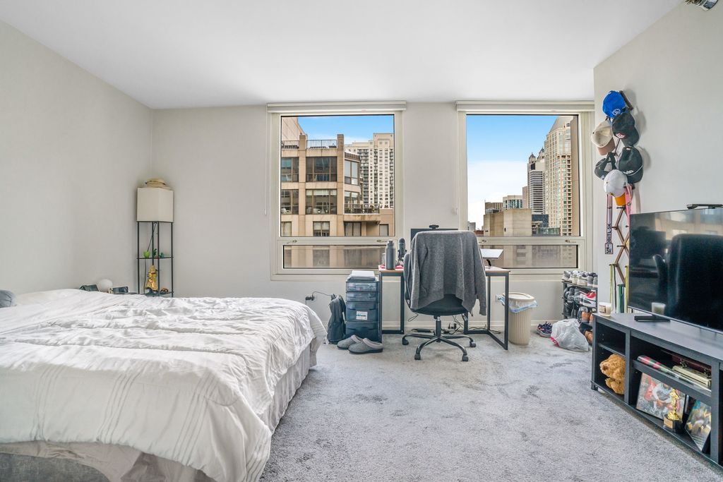 Welcome to your elevated retreat in the heart of River North. This immaculate, 2 bedroom corner residence sits high above the city, offering one of the most sought-after views in the building. Sweeping lake and skyline vistas with all day sunlight and beautiful city views. Inside, the home flows effortlessly with a contemporary open chef's kitchen designed for both everyday living and entertaining. Pristine espresso cabinetry, a generous island with seating, and sleek finishes make this the natural gathering place for friends and family. The smart split-bedroom layout offers exceptional privacy, with two spacious bedrooms ideal for hosting guests or creating a dedicated work-from-home space. Nice sized bathrooms featuring a walk-in shower and a deep 6ft. soaking tub, while in-unit laundry adds everyday convenience. The building delivers true full-service living with a 24hr. door staff, fitness center, outdoor pool and sundeck, party room, conference space, dry cleaning services, and package delivery straight to your door! Everything has been designed to simplify your life and elevate your day-to-day. Step outside and you're instantly immersed in the best of River North: World-class dining, galleries, theaters, shopping along the Magnificent Mile, riverwalk strolls, and easy access to the Loop. Public transportation is right outside your door, and expressways are minutes away, making every corner of Chicago effortlessly accessible. This is city living at its finest.. Sun filled, stylish, and surrounded by the energy that makes River North one of Chicago's most vibrant neighborhoods.