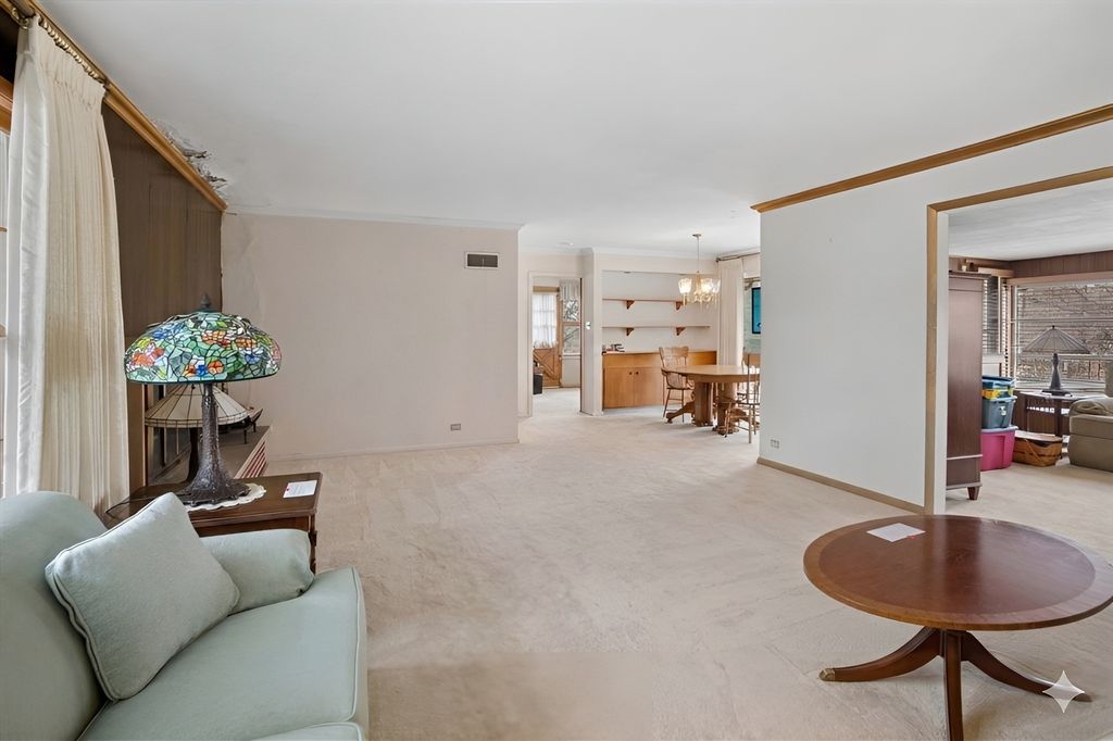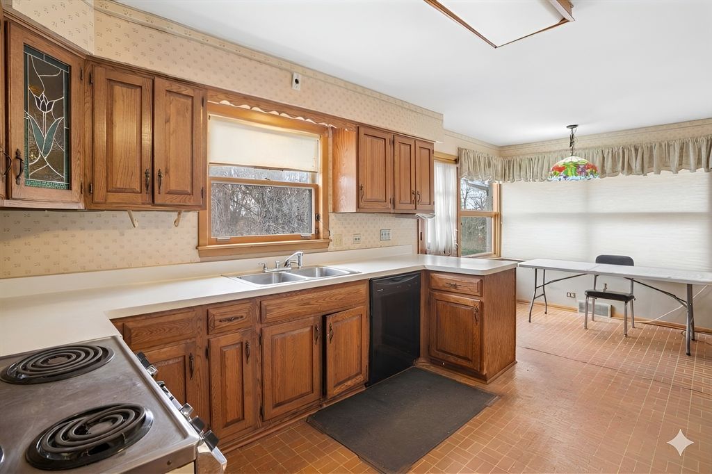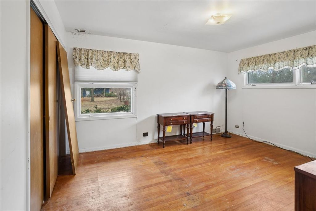 Multiple offers received. Best and final offers due by Tuesday, March 10 at 12:00 PM. Here's your chance to own a solid brick ranch on an expansive 0.46-acre lot in one of Roselle's most desirable neighborhoods, priced to reflect its as-is condition and ready for the right buyer to bring it back to life. Original hardwood floors run through all three bedrooms and the hallway, and the main living and dining areas are a blank canvas ready for your flooring of choice. The spacious living room features a classic brick fireplace, and the large eat-in kitchen with abundant oak cabinetry opens to a bright breakfast nook. A sun-filled sunroom with windows on three sides adds valuable space, while the stunning park-like backyard with mature trees and brick paver patio is a rare find at this price point. The full basement is enormous, already featuring a second fireplace and dedicated laundry area with endless potential for additional living space, a rec room, or workshop. Topped off with an attached 2-car garage, this one is calling your name for sweat equity buyers, investors, and contractors alike. Sold strictly as-is. Come see the potential!