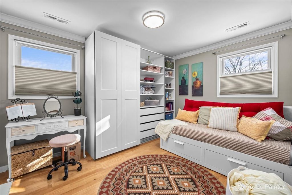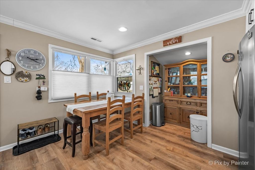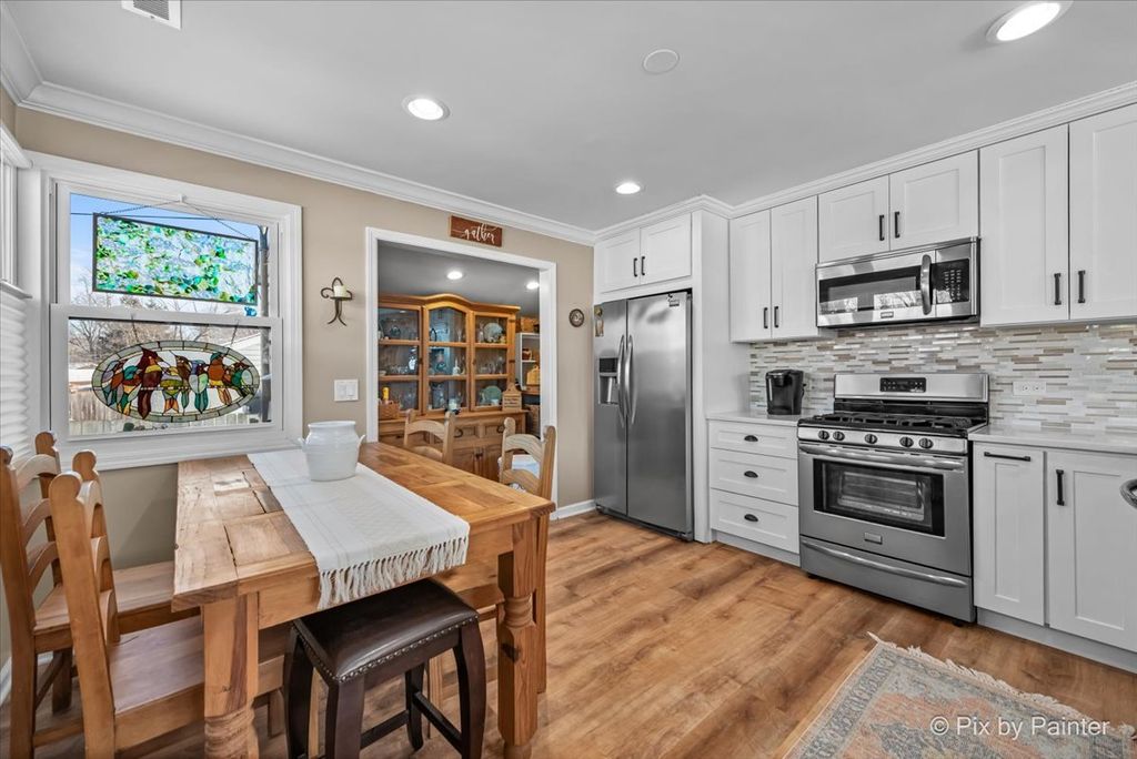 Welcome home to this beautifully updated 3-bedroom, 1.1-bath ranch, perfectly situated on a desirable corner lot in one of Rolling Meadows' most convenient locations. Step inside to a bright and inviting living space featuring hardwood floors throughout, newer windows, and abundant natural light. The kitchen is a true standout, fully updated in 2024 with new cabinetry, countertops, flooring, and recessed lighting. Stainless steel appliances (2022), a custom backsplash, breakfast bar, and large pantry make this eat-in kitchen both stylish and functional-ideal for everyday living and entertaining. Fresh paint throughout enhances the home's clean, modern feel. The full bath has been tastefully refreshed with new tile and a modern vanity, while the primary bedroom offers the convenience of an attached half bath and custom closet organizers. Two additional bedrooms also feature custom organized closets, providing smart storage throughout the home. Just off the kitchen, step onto the oversized deck-perfect for summer gatherings-overlooking a fully fenced yard complete with a garden and mature apple trees, creating a private outdoor retreat. The exterior has been recently painted, adding to the home's strong curb appeal. Additional recent upgrades include a new stackable front-loading washer and dryer (2025), new hot water heater (2025), and a brand-new roof to be installed, offering peace of mind for years to come. A 2.5-car garage completes the package. Located near Kimball Hill Elementary, Carl Sandburg Jr. High, and Rolling Meadows High School, and just minutes from downtown Rolling Meadows, shopping, dining, and major conveniences-this move-in-ready home truly offers the perfect blend of location, comfort, and style. Don't miss it!