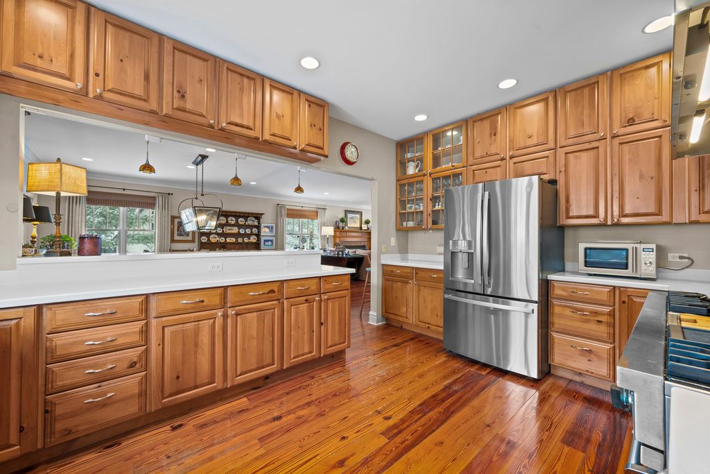 Welcome to 1190 Old Mill Road, a comfortable and casual home set on one acre along historic Old Mill Road. The property offers a true "place in the country" feel, while remaining just minutes from Everett Elementary School, the tollway, shopping and downtown Lake Forest - an exceptionally convenient location for everyday living. Originally built in 1928, the home underwent a thoughtful and seamless expansion in 1996, fashioned after Nantucket Shingle Style architecture, adding an additional 3,600 square feet. The result is a warm, welcoming and spacious residence with purposeful living spaces throughout. Nine-foot ceilings span the first floor, enhancing the open and airy feel. An expansive front porch tranquilly welcomes you home, while a screened porch provides a relaxing retreat overlooking the rear yard and patio. Inside, a true great room serves as the heart of the home - ideal for gathering family and friends. Additional first floor living spaces include a den, two private offices (or optional bedrooms) with access to a full bath, and a convenient first floor laundry room (that does double duty as a wet bar!). The second floor features a generous primary suite with a private bath. Three additional spacious bedrooms with generous closets complete the level - one with an en-suite bath and two sharing a large hall bath. The finished third floor adds a fun and unique space, complete with a golf practice range with launch monitor. A large, finished walk-out basement provides even more flexible living and recreation space, along with tremendous workshop and storage space. Having 400 AMP electrical service, the interior is heated and cooled with four independent HVAC systems and WiFi thermostats providing true zoned environmental control. Outside, the fully fenced rear yard includes automatic gates for easy access, which also provides safe and secure containment of any furry four-legged family members! Completing the property is a three-car detached garage, fully heated and cooled for year-round comfort.