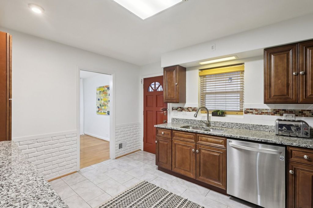 Solid brick split-level home set on a beautiful tree-lined street in Lincolnwood. The sunny living room and spacious dining area feature newer windows and hardwood floors, creating a bright and welcoming main level. The updated kitchen offers ample cabinetry, generous counter space, and Samsung appliances. Upstairs, you'll find three well-sized bedrooms, all with good closet space and ceiling fans. The updated hall bath includes a double vanity with granite countertops, attractive tilework, and two convenient linen closets. The lower level provides a great rec room with natural light, a second full updated bath with a walk-in shower, excellent storage, a large mechanical/laundry room, and walk out basement to the backyard. Outside, enjoy a fenced backyard with a patio, grassy yard, shed, and a side driveway for parking. There is also space off the alley to add a garage. Major improvements include all new windows (2022), new furnace and hot water heater (2018), updated kitchen and baths (2018), new washer/dryer (2017). The home also features a dry crawl space. Fantastic location near Mariano's, Lincolnwood Town Center, Lowe's, Walmart, and Costco, with easy access to the highway. Highly regarded Lincolnwood schools (Pre-K through 8th grade all on one campus) and an outstanding public library round out this great offering.