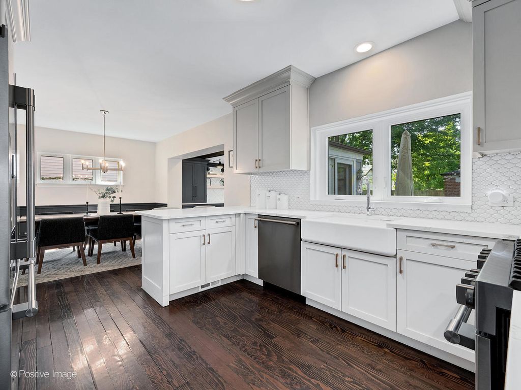 Stately brick two-story on a quiet, tree-lined street in sought-after Harding Woods of La Grange Park, complete with a detached 2-car brick garage that complements the home's classic architecture. This 3BR/1.1BA home is loaded with curb appeal and beautifully updated inside and out. Completely remodeled in 2018, it features a white kitchen, stylish bathrooms, finished basement, and custom millwork. Hardwood floors, neutral colors, and on-trend lighting create a timeless, inviting feel throughout. The fenced backyard (2020) offers privacy for outdoor living with a paver patio, while inside the family room was enhanced in 2022 with a dry bar and dual-zone U-Line beverage center - perfect for entertaining. Upstairs, you'll find three generously sized bedrooms. Recent investments include new roof, gutters, and soffits to garage and house addition (2020), garage storage system (2022), whole-house humidifier (2022), new furnace/AC (2024), and hot water heater (2025). Nothing to do but move right in and enjoy!
