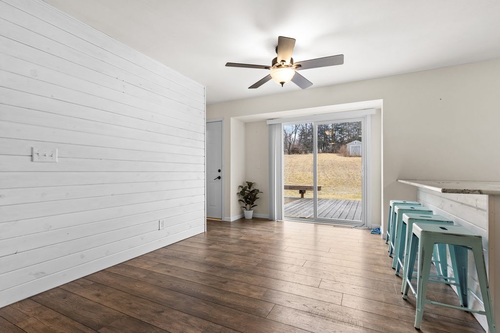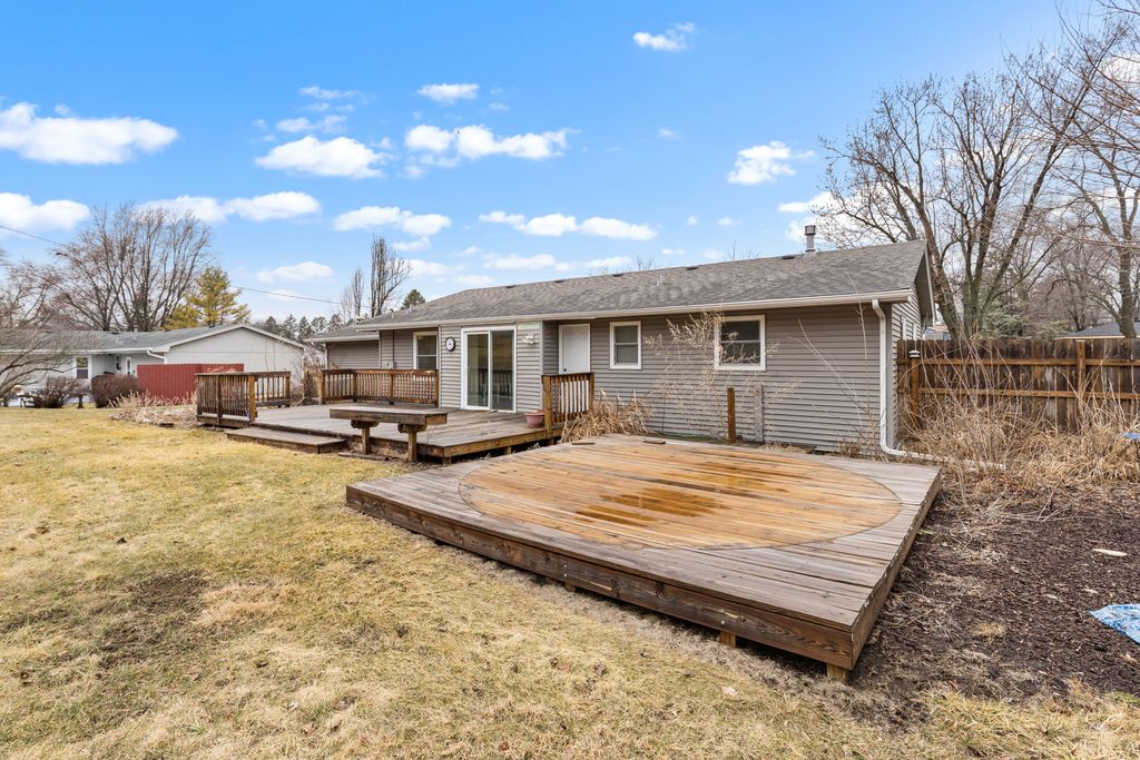 Ranch home with 3 bedrooms, 1.5 bathrooms, and an attached 2-car garage situated on a spacious .83-acre lot. The updated kitchen features white shaker cabinetry, subway tile backsplash, granite countertops, and a large peninsula-perfect for everyday living and entertaining. The light and bright living room offers a large picture window and newer vinyl plank flooring. The dining area showcases a stylish shiplap accent wall, newer vinyl plank flooring, and patio doors that lead to two large wooden decks, approx. 4 years old. Both bathrooms have been updated with newer vanities and toilets. Major updates include roof, furnace, A/C, and water heater all replaced in 2017, along with vinyl windows throughout and a well head replaced 2 years ago. Enjoy the large backyard with a storage shed and plenty of room to roam. Conveniently located just minutes from US-20, I-39, Rockford Airport, and multiple forest preserves.