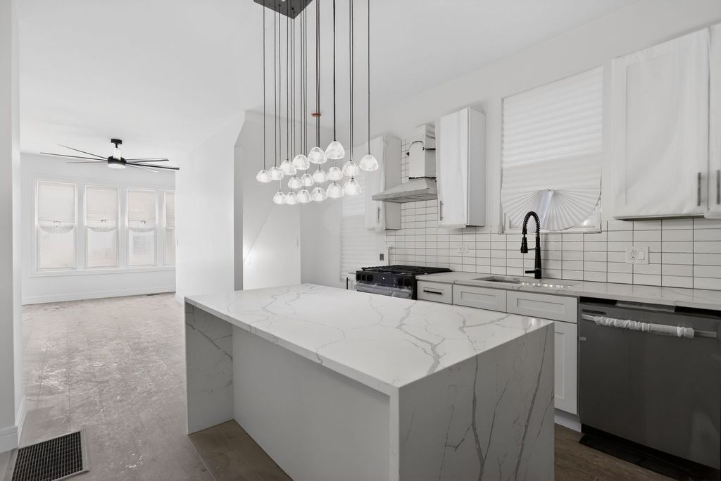 Here is your opportunity to own a beautifully and completely renovated single-family home in the rapidly growing Austin Park neighborhood. This property has been fully rehabbed with all permits, with every improvement approved by the City and architect. The home offers 4 spacious bedrooms and 3 full bathrooms, featuring a stunning brand-new kitchen with white shaker cabinetry, quartz countertops, and stainless steel appliances. Thoughtfully selected modern lighting throughout the home adds warmth and a refined designer touch. The first floor includes an additional flexible room, ideal for a home office, guest space, or playroom. All three full bathrooms are breathtaking, featuring brand-new plumbing and contemporary finishes. Major system upgrades include all-new electrical wiring, a new electrical panel, and all new windows throughout the home, providing peace of mind and energy efficiency. Enjoy outdoor living in the spacious backyard, complete with a large 2-car detached garage. The home is conveniently located close to CTA transportation and major interstates, while still situated on a quiet, non-busy street. This is a truly move-in-ready home-nothing to do but bring your furniture and enjoy.