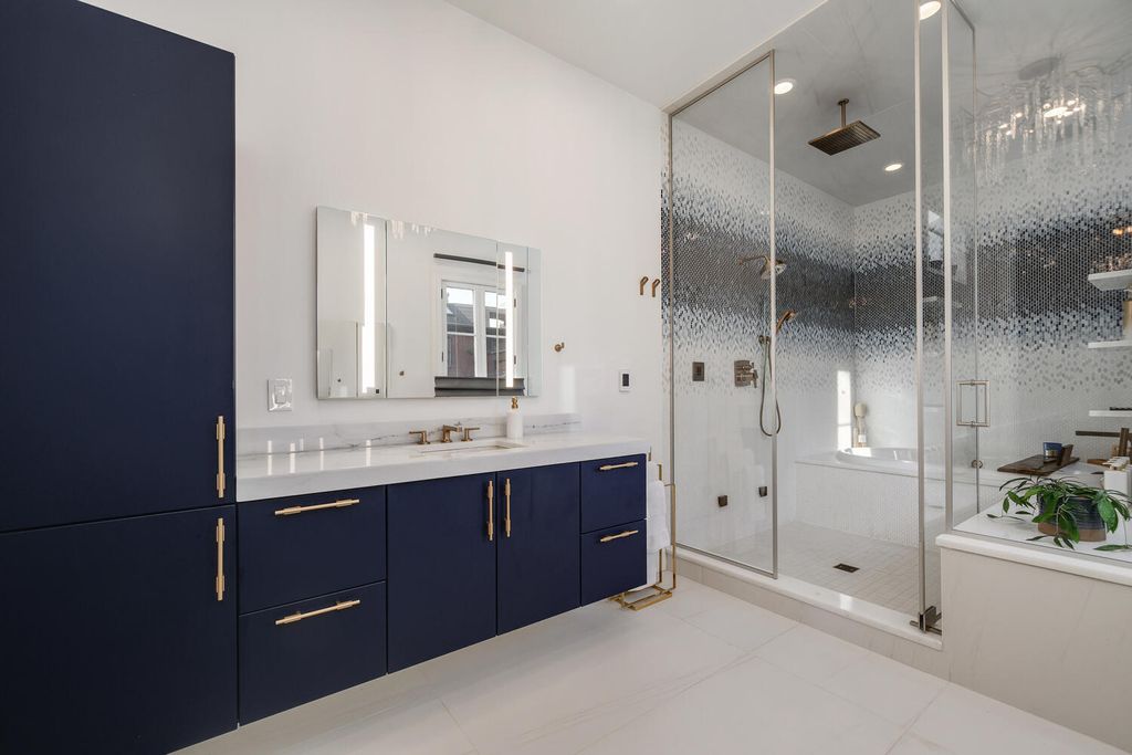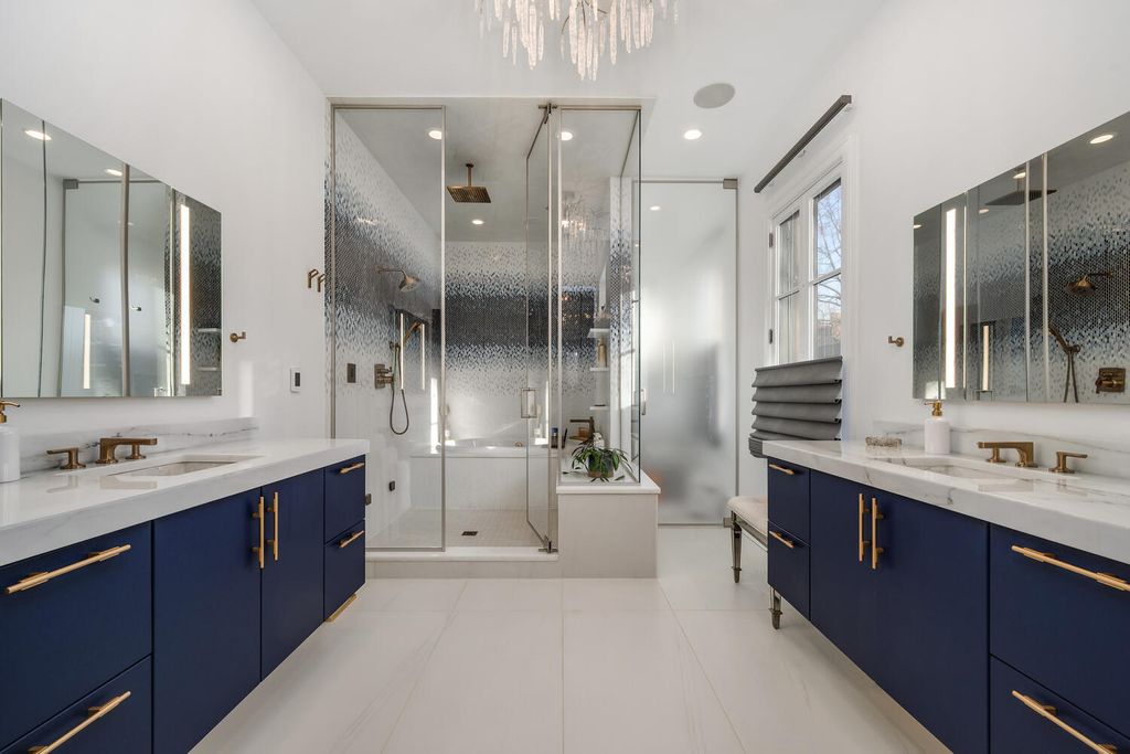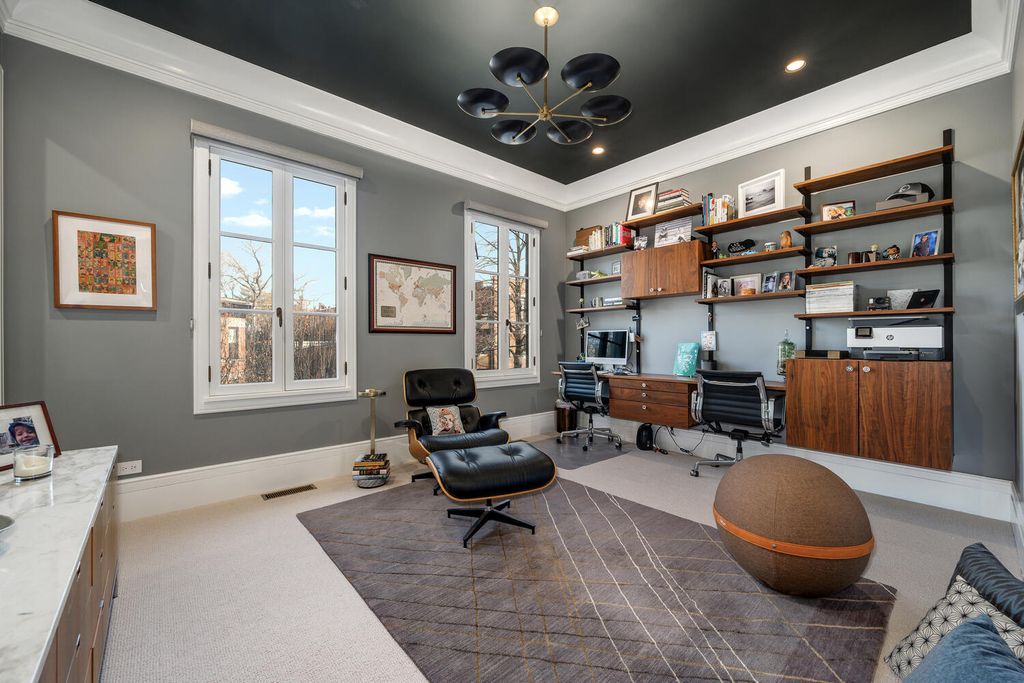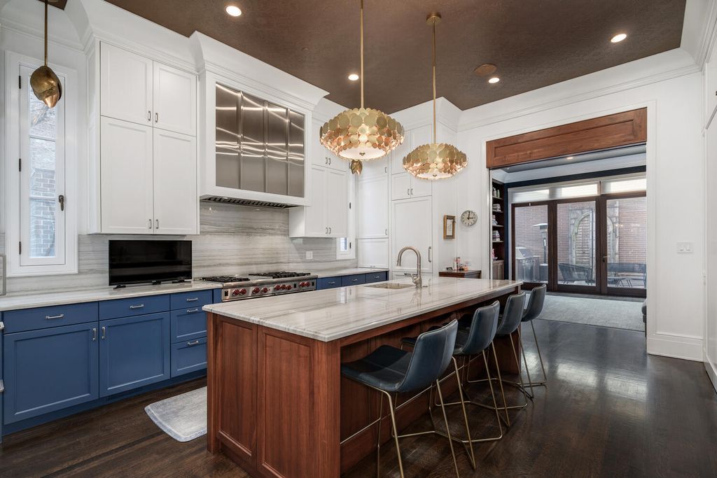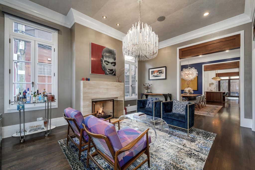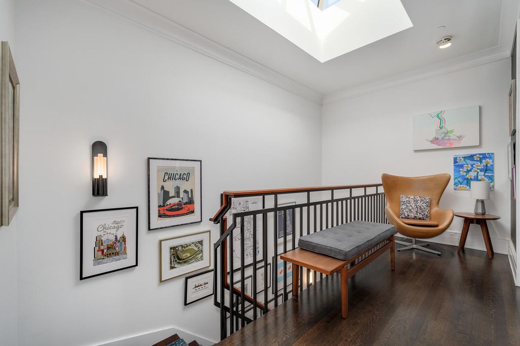 Sensational custom-built brick and red limestone residence located on a coveted Magnolia corner in the heart of Lincoln Park. This exceptional luxury home blends timeless architectural elegance with modern, high-end upgrades and offers rare features including a four-stop elevator, abundant natural light, and five expansive outdoor spaces. Designed for both everyday living and elegant entertaining, the main level features a beautifully open concept with formal living room flowing seamlessly into the large dining room, a chef-caliber kitchen, and the family room, all able to be privatized with walnut pocket doors between each space-a truly thoughtful architectural detail! The recently updated kitchen is a true centerpiece, outfitted with two Sub-Zero refrigerators, a Wolf range, 2 dishwashers, dual sinks, a true grand, walk-in pantry with custom shelving, and upgraded designer lighting. A newly designed powder room completes the main level. This home offers five exceptional outdoor spaces, a rare find in Lincoln Park. Highlights include a newly constructed rooftop garage deck featuring a custom pergola, fire pit, refrigerator, ice maker, and warming drawers, ideal for year-round entertaining. Additional outdoor spaces include a terrace off the family room with a built-in BBQ and dining area, a private deck off the primary suite, and individual decks off both top-floor bedrooms. The primary suite is a private sanctuary featuring a spacious walk-in closet and a fully renovated spa-inspired bathroom with heated floors, heated soaking tub, steam shower with built-in aromatherapy, and dual vanities. Three additional upper-level bedrooms are generously sized, each with ensuite bathrooms and excellent closet space. The lower level provides exceptional flexibility, offering two additional bedrooms, one used as an exercise room, and a large family and media room with custom built-ins. A beautifully appointed laundry room with two washers and two dryers and an exceptional mudroom that is attached to the 2+ car garage makes this home an exceptionally wonderful place to live. Additional upgrades throughout the home include designer wall coverings by Philip Jeffries, all-new automated Hunter Douglas window treatments, a fully integrated whole-home AV and speaker system including outdoor decks, business-grade WiFi, and updated designer lighting throughout. The landscaped parkway and front entry have been completely redesigned. This one-of-a-kind Lincoln Park residence offers an extraordinary combination of classic craftsmanship, modern luxury, and unparalleled indoor-outdoor living, all just steps from premier shopping, dining, parks, and everything one of Chicago's most sought-after neighborhoods has to offer.