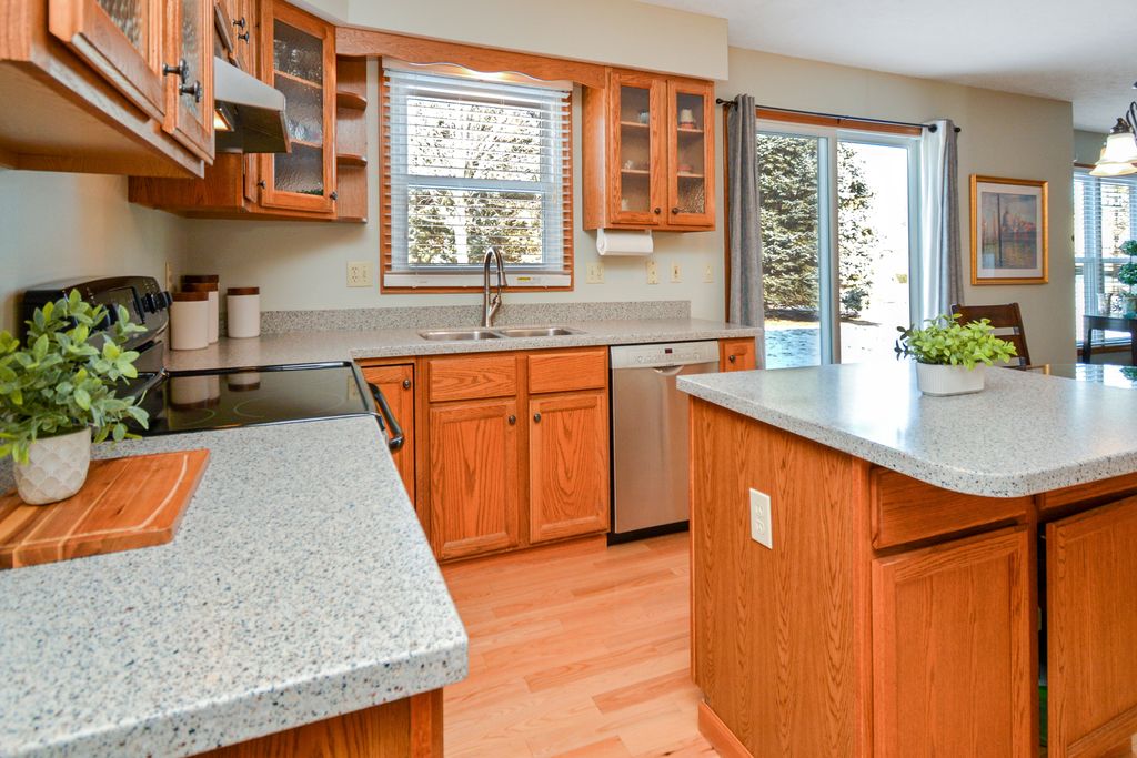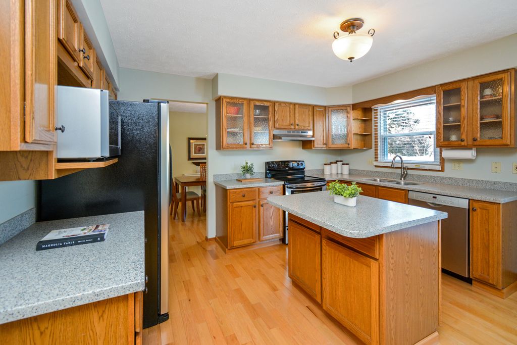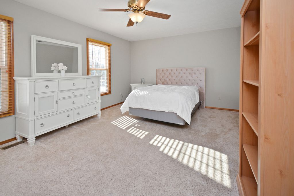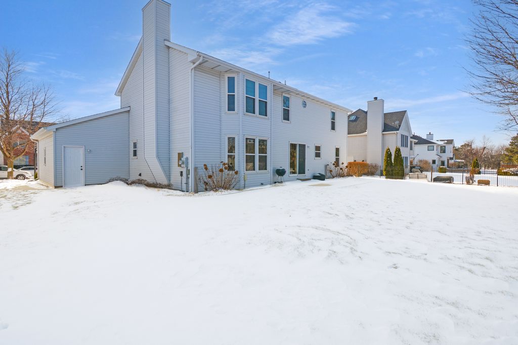 Located on a quiet cul-de-sac in Eagle Crest, this classic two-story offers an unbeatable East Bloomington location close to everything, plus highly regarded Unit 5 schools (Grove Elementary, Chiddix Jr. High & NCHS). Inside, you're welcomed by a gorgeous two-story entry with hardwood floors and a layout that truly works for everyday living. The main level features an eat-in kitchen with Corian countertops, stainless appliances, and plenty of cabinetry-open to a spacious family room with a gas fireplace and timeless brick surround. You'll also find a formal dining room, a separate living room/flex space, a convenient powder room, and a laundry/drop zone right where you need it. Upstairs, all four bedrooms are generously sized and thoughtfully placed on the second level. The huge primary suite is a standout with a large walk-in closet and an en suite bath featuring a double vanity plus a private water closet/shower area. A second full hall bath serves the other three bedrooms, including Bedroom 2 that boasts its own walk-in closet. The partially finished basement adds even more living space with a large family room-perfect for movie nights, play space, or a home gym. Outside, enjoy a backyard patio with updated landscaping and hardscaping, and the 3-car attached garage is the cherry on top. Numerous updates add peace of mind, including the roof, windows, HVAC, water heater, sump with water backup, garbage disposal, paint, and more. Warm, welcoming, and well cared for-this one just feels like home.