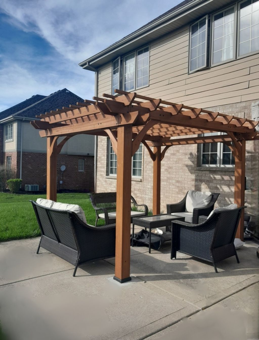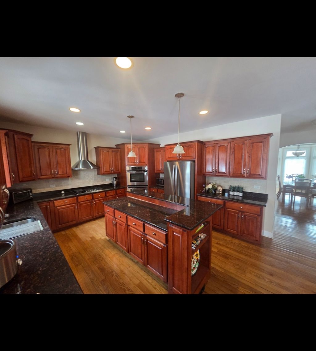 Step into timeless elegance with this French Provincial-inspired brick estate, showcasing dramatic rooflines, refined architectural detailing, and stunning curb appeal. Inside, a grand foyer introduces a luxurious layout featuring a formal dining room with custom wainscoting, tray ceilings with cove lighting, a formal living room, and a chef's kitchen with upgraded stainless steel appliances and hood, expansive granite counters and island, with a walk-in pantry. The kitchen opens to a sunlit breakfast area with a bay window. Stepping into a Great Room with a floor to ceiling fireplace. A main floor office, full bath, and stylish mudroom elevate convenience. The finished 9 ft basement ceilings offers two spacious bedrooms, a full bath, a brick fireplace and a versatile recreation space. Overlook the Great room as you venture upstairs to walnut plank flooring, four expansive bedrooms that offer vaulted and tray ceilings, three bedrooms offer walk-in closets, and three full baths include a spa inspired primary suite with dual vanities, soaking tub, separate shower. Outdoor living shines with an oversized patio and a shaded pergola surrounded by mature maples. Located in the prestigious Timbers Edge subdivision and Lincoln Way East district minutes from downtown Frankfort, this home delivers unmatched luxury and comfort.