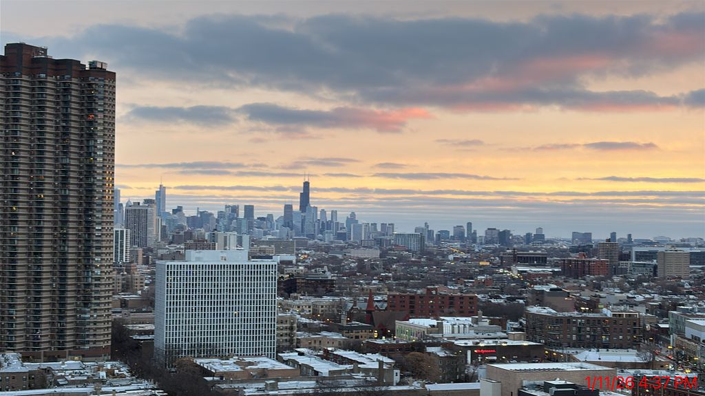 Located on the 25th Floor high above the city lights in this full amenity building this jumbo one-bedroom units has everything you can ask for when it comes to city living! As you walk into the unit you will love the layout, a large living room with western exposure allows for endless sunset views and flows effortlessly into the dining room which leads to a spacious balcony. Off the balcony you will fall in love with the lake views while also encompassing the skyline views! The bedroom is very spacious and bathroom is modern. With just minimal updates this unit has great upside for value-add potential and should not be overlooked!