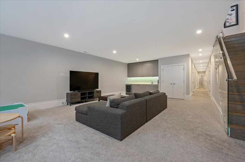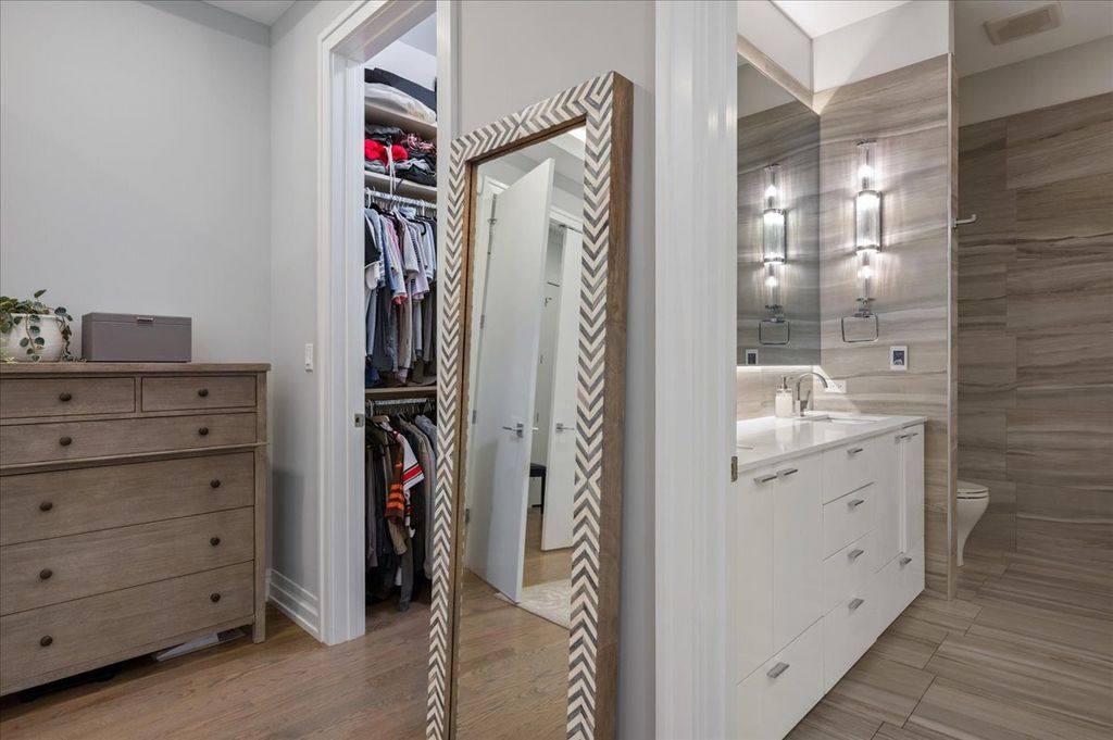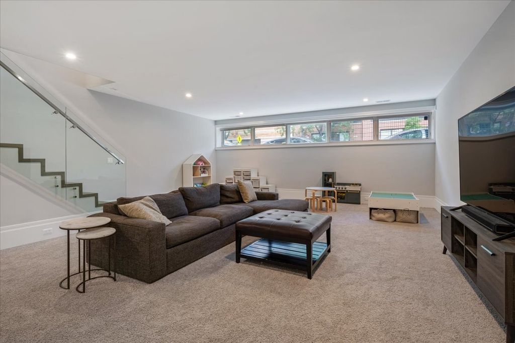 Tucked just a few blocks from the vibrant pulse of Roscoe Village, this impressive 4-bedroom, 3.2-bath duplex down, spanning over 4,000 square feet, offers the space and custom touches of a single-family home. Its extra-wide, open-concept floorplan stands out with 11-foot ceilings on the main level and 9-foot ceilings downstairs, creating a bright and airy atmosphere. The gourmet kitchen is a highlight, featuring tall custom cabinetry, a large quartz-topped island, high-end chef-inspired appliances, and a built-in Bosch espresso machine, ideal for both daily cooking and entertaining. The master suite provides a restful escape with a roomy walk-in closet fitted with custom built-ins and a luxurious ensuite bath boasting heated floors and a steam shower. A second bedroom includes its own ensuite bath and custom closet, while two additional bedrooms share another full bath, with two well-placed half baths-one on each level-adding convenience for guests. The spacious family room, equipped with a stylish wet bar, is perfect for gatherings or relaxed evenings, enhanced by ample storage and custom Hunter Douglas window treatments throughout. Step outside to enjoy a private 25' x 19' pergola-covered deck atop the garage, exclusive to this unit, or relax on the inviting covered front terrace off the living room, perfect for morning coffee or evening unwinding. One dedicated garage parking space is included. With Felger Park right across the street and Hamlin Park nearby, this duplex blends thoughtful design, modern comfort, and an unbeatable location in one of Chicago's most charming neighborhoods.