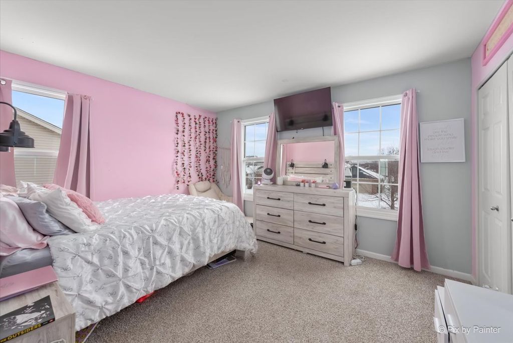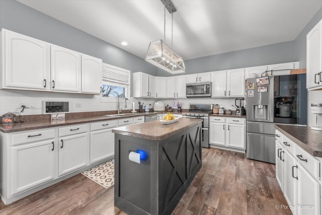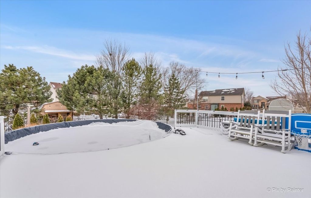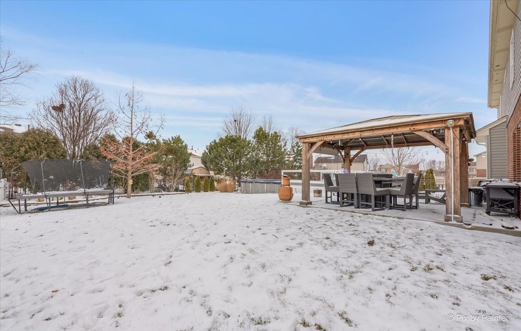 Well-maintained 2-story home located in the highly desirable Laraway Ridge subdivision of New Lenox! This beautiful home features 4 bedrooms, 2.5 baths, a spacious loft, and a convenient second-floor laundry room. The main level offers newer luxury vinyl flooring throughout, an updated half bath, and a bright kitchen with white cabinets and stainless steel appliances. (Refrigerator is just a few months old) The dining area opens to a stunning, oversized backyard perfect for entertaining, featuring a newer concrete patio, gazebo, above-ground pool (24 ft round, 4 ft deep), deck, beautiful landscaping, and a fully fenced yard. The second floor boasts a large loft, four generously sized bedrooms, and two full bathrooms. Recent updates include a new vanity and lighting in the primary bathroom and a freshly painted vanity and new lighting in the second bath. Plush carpeting was replaced approximately two years ago. The full unfinished basement offers endless potential with rough-in plumbing for a bathroom and some walls already studded - ready for your finishing ideas. Additional highlights include a 3-car garage for added daily convenience, freshly painted interior (2024), new A/C (2024), and new water heater (2024). Located in an award-winning school district and close to schools, parks, shopping, and entertainment. Don't miss this incredible opportunity to own a beautiful home in a prime location!