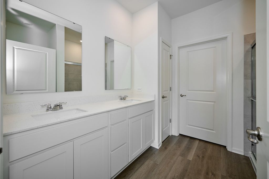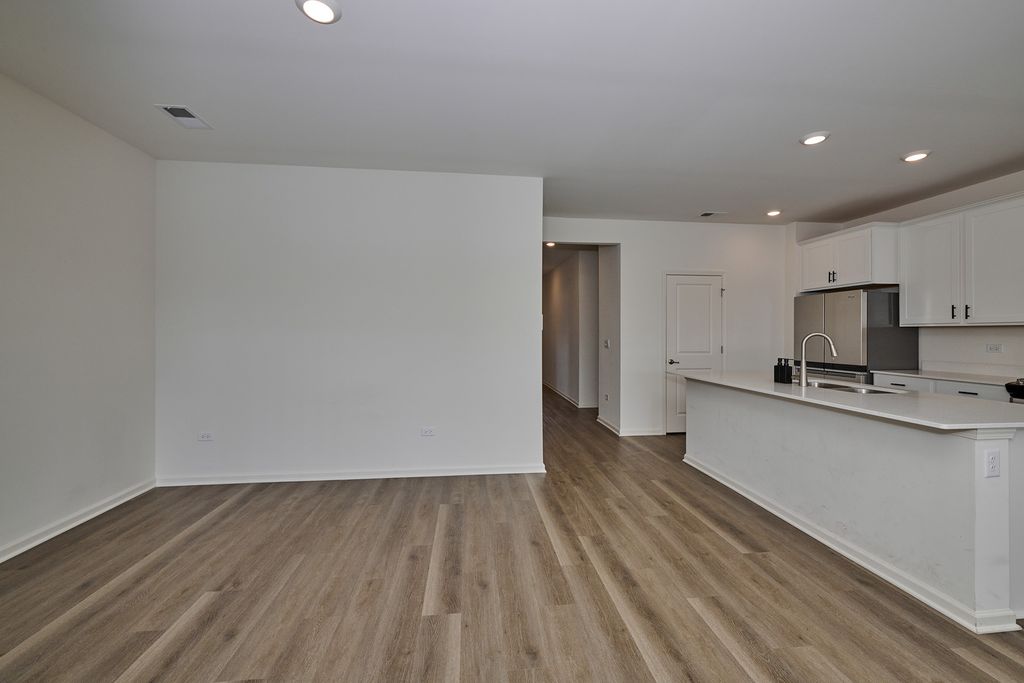 Envision yourself at 1179 Wood Lily Lane in Bartlett, Illinois, a beautiful new one year old home in The Grasslands community. This ranch duplex is ready to move-in! Scenic homesite backs to open ground and includes fully sodded yard and covered back patio. The Taylor offers 1,505 square feet of living space with 3 bedrooms, 2 baths, and 9-foot ceilings. When you first enter the home you will see the secondary bedroom, full bathroom, and linen closet. Down the hall, you will walk into the open concept great room, kitchen, and dining. The kitchen layout includes a large island with an overhang for stools, 42-inch designer white cabinetry with crown molding and soft close drawers. Additionally, the kitchen features a pantry, modern stainless-steel appliances, quartz countertops, and easy-to-maintain luxury vinyl plank flooring. Enjoy your private get away with your spacious primary bedroom and en suite bathroom with a raised height dual sink, quartz top vanity, and walk-in shower with ceramic tile walls and clear glass shower doors. The Grasslands is an ideal location with unlimited conveniences, centrally located between Interstates I-90 and I-88, just a short, 5-minute drive to the Metra, making commuting easy. Additionally, residents will enjoy future amenities in this private, scenic community, including walking trails, bike paths and a Park District Development. All Chicago homes include our America's Smart Home Technology, featuring a smart video doorbell, smart Honeywell thermostat, Amazon Echo Pop, smart door lock, Deako smart light switches and more.