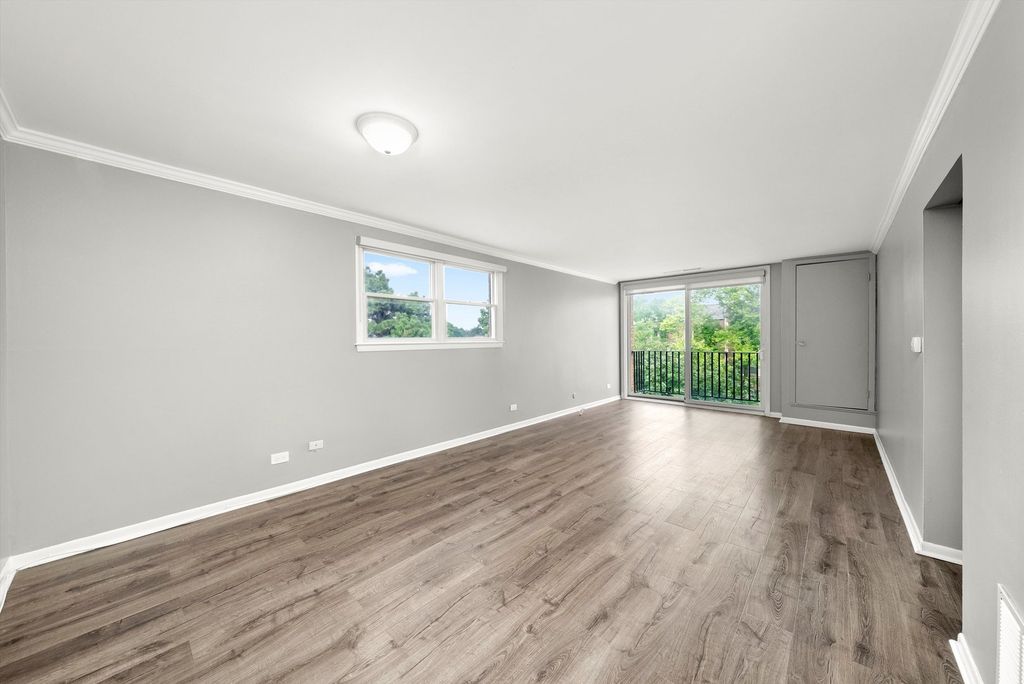 Rare gem in the heart of Oak Park's cherished Hemingway District, showcasing bright, top-floor, corner unit with southeast-facing views along beautiful tree-lined streets! This modern 3-bedroom, 2-bath condo features newer vinyl flooring throughout and gray-painted walls, creating a sleek and inviting ambiance. Enjoy a private balcony with treetop views, perfect for grilling, relaxing, or enjoying your morning coffee. The updated kitchen, equipped with gleaming stainless steel appliances and elegant quartz countertops, flows seamlessly into the adjacent dining room, perfect for hosting gatherings or enjoying everyday meals. The spacious primary bedroom suite offers a serene retreat with generous closet space. Two additional generous sized bedrooms ensure comfort for family or guests. Stay comfortable year-round with central air conditioning and heat, and enjoy the convenience of having an elevator and laundry facilities in the building. This unit includes one covered, assigned parking space, storage locker and a designated bike storage area. Monthly assessments include heat, water, and trash. Nestled in the highly coveted OPRF school district, this home is within walking distance of top-rated schools, Scoville Park, Ridgeland Commons Pool & Ice Rink, the Farmers Market, the Green Line CTA, the Metra, and the vibrant downtown Oak Park, with its array of shops, restaurants, and charm. Don't miss this opportunity to live in a beautifully updated condo in one of Oak Park's most sought-after neighborhoods!
