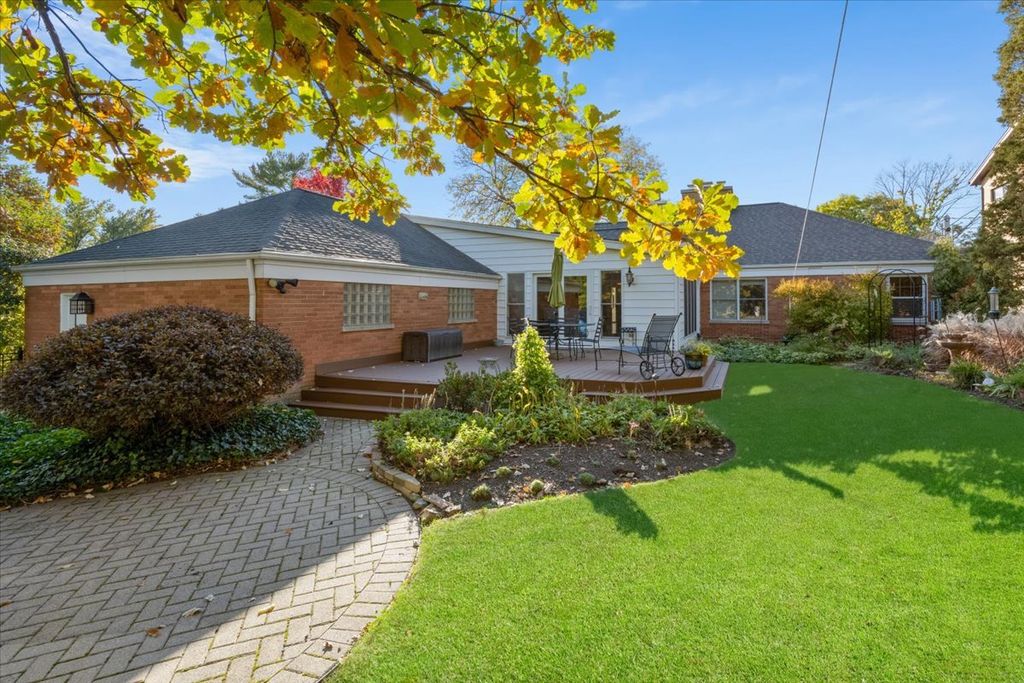 Once in a generation opportunity to own this sprawling ranch home sitting high on a huge corner lot and flooded with natural sunlight. Home is oriented to receive maximum east, south, and west sun and has mature landscaped grounds that the loving owner has curated and maintained for over 40 years. All three schools (Downer, Herrick, and North) are within a few blocks, making this a prime location for quality public schools. Spacious first floor features huge common rooms flowing to large rear deck and huge rear yard and gardens, which can also be accessed from basement. This home is built for day-to-day comfort and is also any entertainer's dream. 4 bedrooms (w/1st floor master suite) and 2.5 bathrooms on first floor. Finished basement has two large recreation rooms, full bathroom, laundry room, workshop/mechanical room, and storage. Attached 3-car garage has ample custom storage cabinets. Basketball court in front yard is set back from street and has privacy landscaping surrounding it. Underground irrigation, zoned HVAC, updated high-quality windows, large unfinished attic. Well-maintained home inside and out. Close to schools, downtown Downers Grove, Metra train stop, great parks, endless restaurants and shopping.