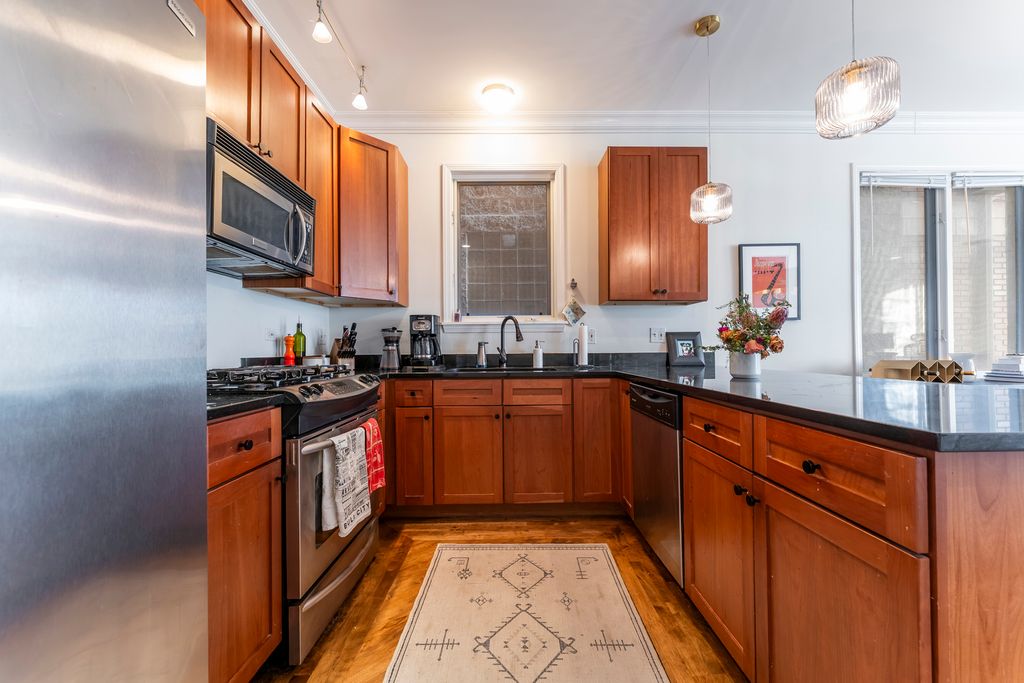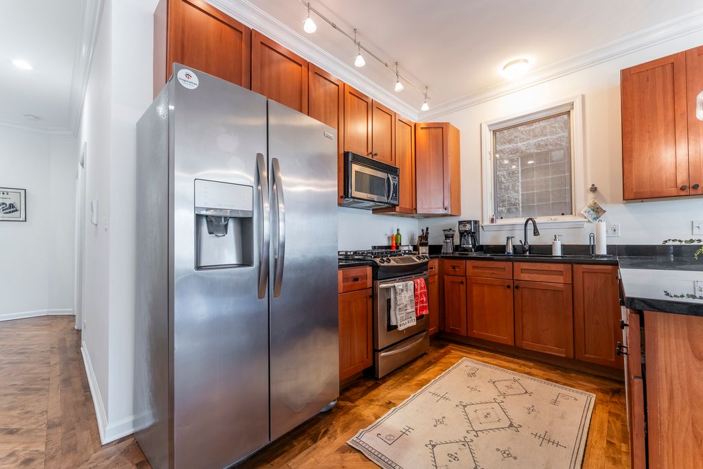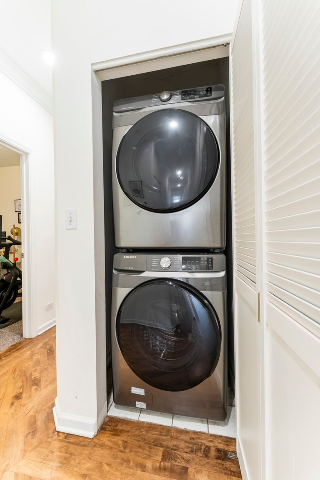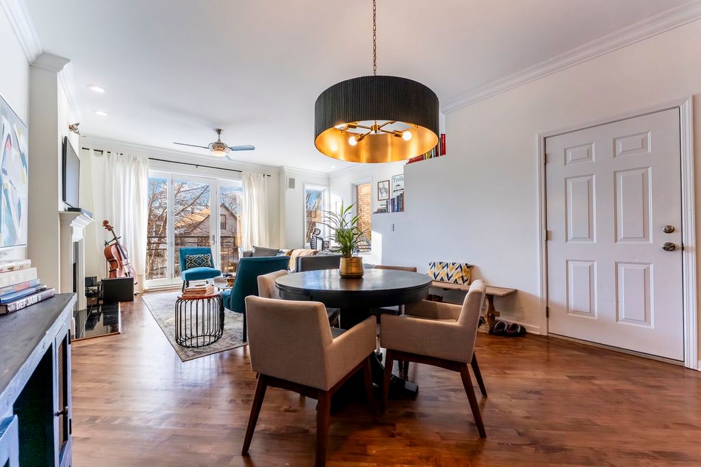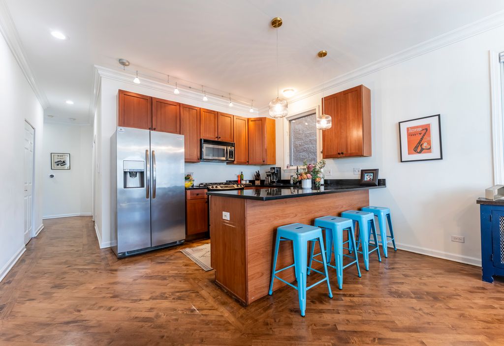 The location of this 2BD/2BA condo in Bucktown is absolutely phenomenal. Just steps from the Western Blue Line and direct access to the 606 Trail, it's situated in the heart of one of Chicago's most walkable and desirable neighborhoods. The unit features an open-concept living and dining area with refinished hardwood floors and a newer installed gas fireplace. Kitchen includes granite countertops and stainless steel appliances. Primary bedroom offers an en-suite bathroom with jacuzzi tub, separate shower, and double vanity. The second bathroom was fully renovated in 2024. Additional features include in unit laundry, a front Juliet balcony, private back deck, and built-in sound wiring. The HVAC system was totally replaced in 2022. One garage parking spot is included in the price.
