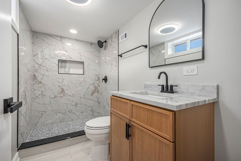 Nicely remodeled home in desirable Willowbrook location. This home features many updates. New siding and windows. The gorgeous new kitchen features quartz countertops and backsplash, stainless-steel appliances and modern cabinetry. Bathrooms have been updated with new tile, vanities and fixtures. New doors and trim and freshly painted in neutral color. Additional living space in the basement. Located on a quiet street across from a park and near shopping and expressways. Shows very well. Will not disappoint.