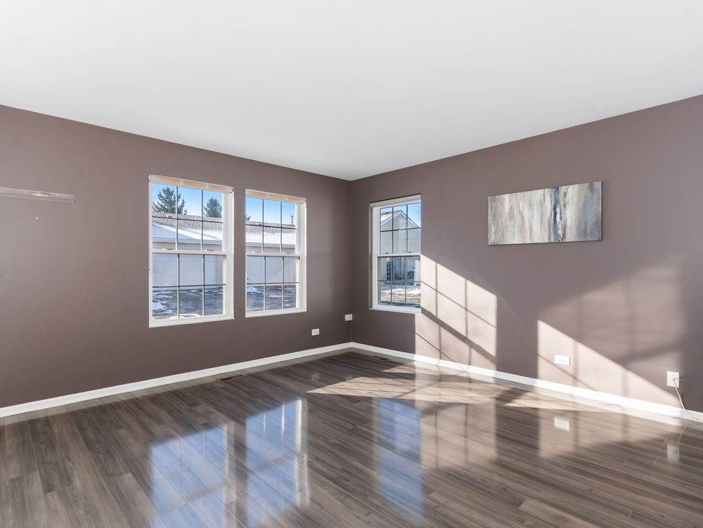 Ogden Falls corner 2 bedroom, 2 1/2 bath townhome unit. Modern & move-in ready property that includes a newer furnace/HWT. Roof is only a hand full of years old. Unit has been updated with new LPV flooring, fixtures and lighting. Formal living room is perfect for gatherings or reading up on your social media/news of the day. Refreshed kitchen has 32" black cabinetry/white appliances and also has a separate eat-in area. Sun drenched family room is located off the kitchen and soaks in all of the southern sunlight. Bonus storage area under the stairs. Both bedrooms are located on the 2nd floor including 16x14 primary bedroom that has a walk-in closet & it's own private bathroom. 2-car attached garage located right off the laundry room with full sized washer and dryer. Privacy patio off the kitchen is perfect for entertainment or use for the gourmet griller.