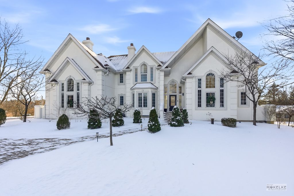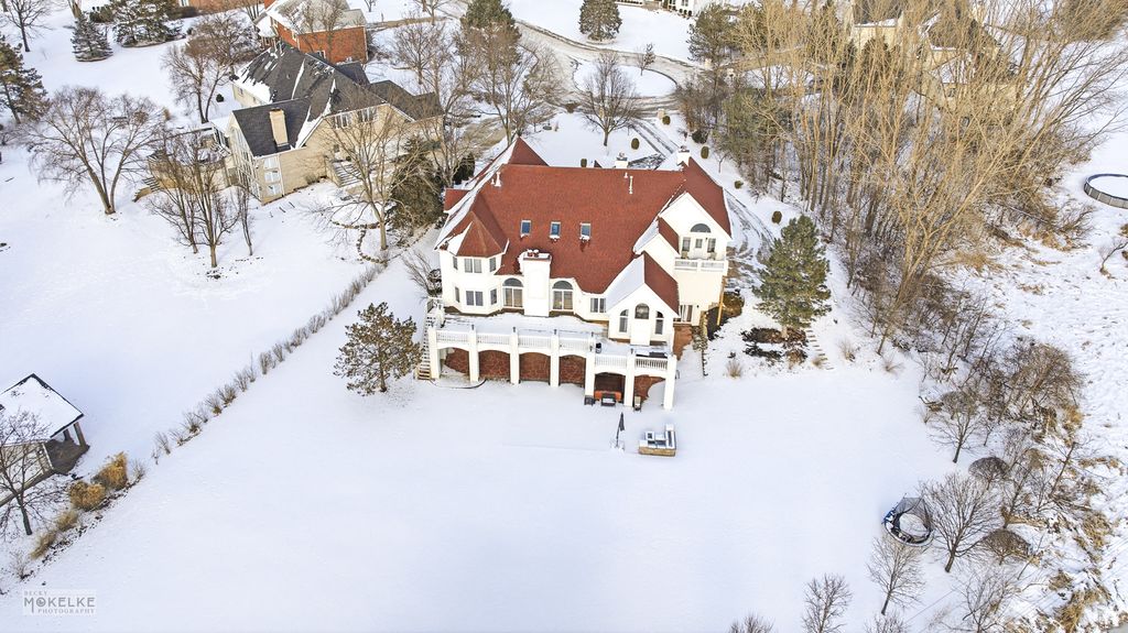 Welcome to this stunning custom home located on a quiet cul-de-sac within the desirable Foxmoor Estates neighborhood of Lemont~Exceptional living space includes 6 bedrooms, 5.1 bathrooms, 5 fireplaces & a full, finished walk-out basement~The circular brick driveway & tiered fountain creates an inviting first impression~Tucked away on a premium, 1+ acre parcel framed w/lovely mature trees, assorted annuals & fruit trees~Experience spectacular panoramic views year-round from the expansive main balcony & the private balcony from the primary suite~Gather the family around the amazing new paver patio w/fire-pit for your outdoor fun & enjoyment~Many recent upgrades have been made both to the interior & the exterior of this spacious home, creating the perfect blend of thoughtful, timeless design mixed w/modern comfort for your everyday living~The grand 2-story foyer showcases an incredible voluminous ceiling & elegant curved staircase~Beautiful hardwood flooring & new marble flooring throughout the open-concept main level~The foyer opens to the formal living room & the fantastic 2-story Great Room~The Great Room features newly refinished hardwood flooring, a beautifully renovated fireplace, skylights & a new custom beverage bar w/mini fridge, perfect for entertaining family & friends~The Great Room opens to both the kitchen & the sun-filled dining room w/fireplace & refinished hardwood flooring~The updated Dream Kitchen offers lovely maple crowned cabinetry w/gorgeous new quartz countertops, tile backsplash & new upgraded SS appliances, sure to bring out the inner chef~The main level also offers an impressive office w/library & a spacious bedroom w/en suite bathroom featuring dual vanities, jetted tub, separate shower & 2 walk-in closets~You will appreciate the convenient, updated 1st floor laundry room w/newer washer/dryer, new butcher block countertop w/tile backsplash & SS sink~The beautiful hardwood flooring continues throughout the 2nd level of the home~Relax & retreat to the very special primary suite w/volume ceiling, a romantic fireplace, 2 walk-in closets & private balcony~The primary spa-like en-suite bathroom offers dual vanities, a large jetted soaking tub & separate shower~The 2nd level also offers 2 additional en suite bedrooms, a gallery wall & cozy loft area~The elegant curved staircase continues to the fabulous, finished walk-out basement, featuring an open-concept family/entertainment room w/fireplace, a full 2nd kitchen, a recently renovated theatre room, a 4-season room (currently used as home gym), a full bath & 2 bedrooms~The finished walk~out basement is perfect for large gatherings, an in-law arrangement or multi-generational living~This home is well-equipped w/an efficient multi-zoned heating/cooling system (w/separate heating/cooling system), a newer whole house water filtration system & a reverse osmosis system for the main kitchen~Attractive side load 3-car garage w/new service door~Convenient location, close to schools, parks, shopping, dining & golf & more~Truly an exceptional home!