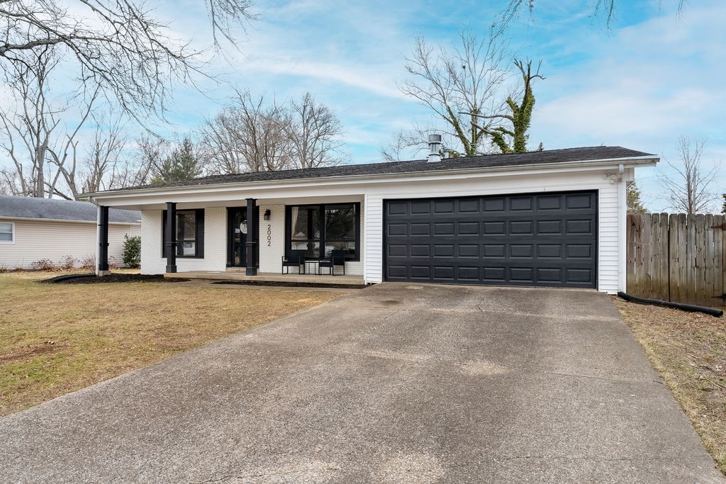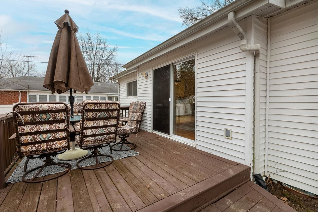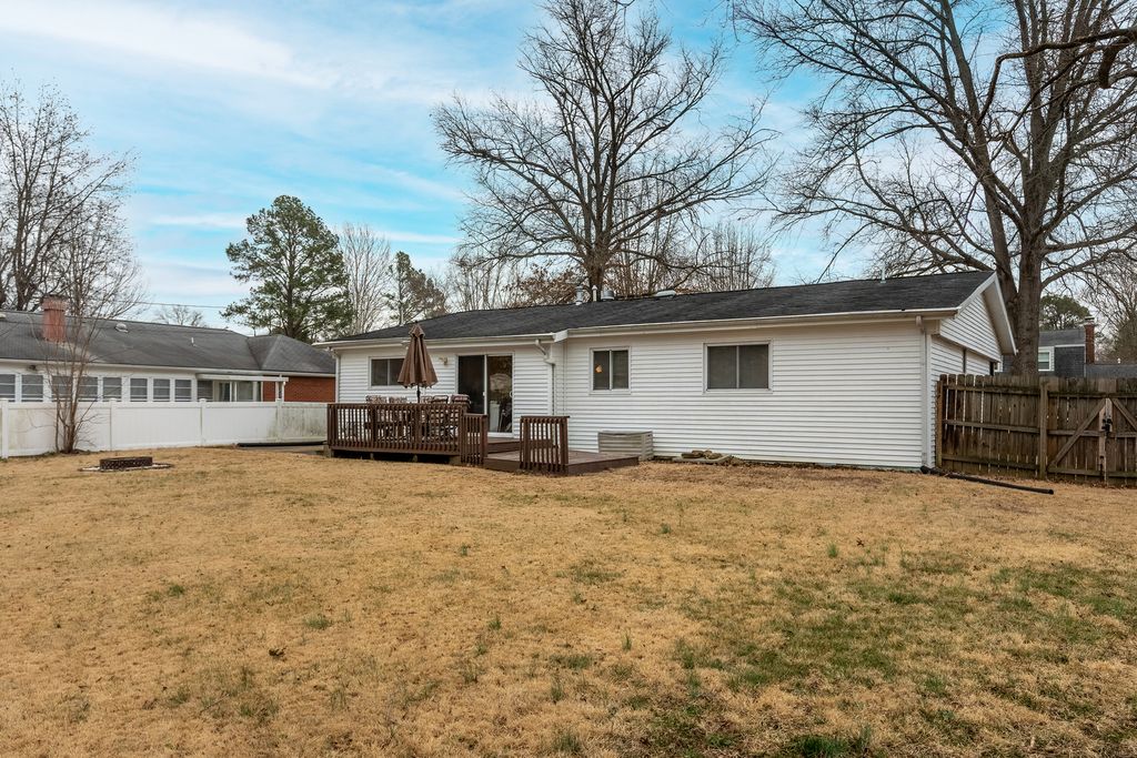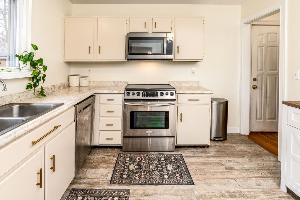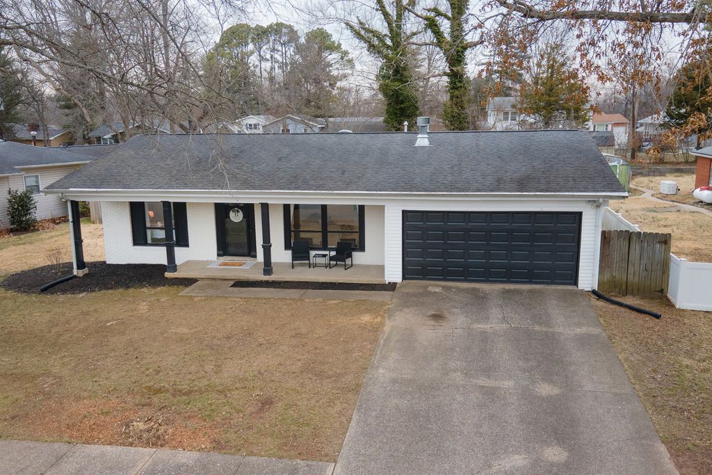This stylishly updated 3-bedroom, 2-bath ranch blends classic comfort with modern design - tucked away on a private cul-de-sac for added peace and privacy. A rare find for a 1970s home, the spacious primary suite features a true full ensuite bath, offering privacy and convenience not often seen in homes of this era. The striking black-and-white exterior sets the tone for the clean, crisp interior, where thoughtful updates and warm brass finishes create a polished yet inviting feel throughout. The large kitchen is both functional and beautiful, complete with stainless steel appliances, abundant cabinetry, and a dedicated pantry. A separate laundry area with a ventless dryer adds everyday ease. Enjoy gathering in the separate dining room with direct access to the deck and expansive fenced backyard-perfect for entertaining, pets, or play. The living room offers a cozy wood-burning fireplace and abundant windows that fill the space with natural light. A covered front porch provides a welcoming spot to relax and unwind. With modern style, functional updates, and a generous outdoor space, this move-in-ready ranch offers comfort and character in one appealing package.