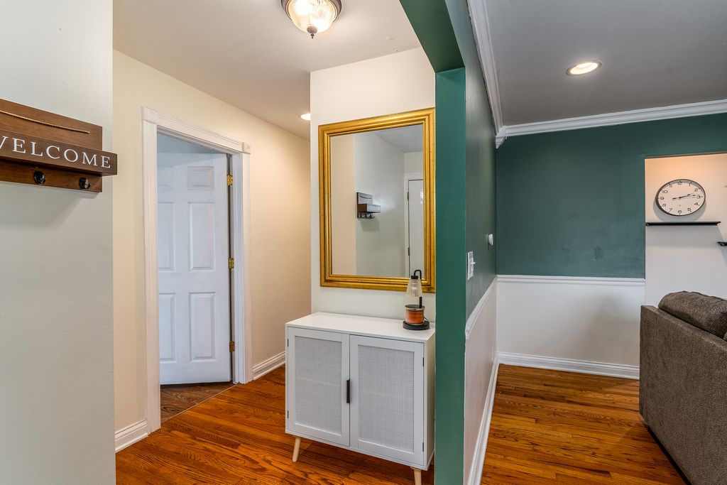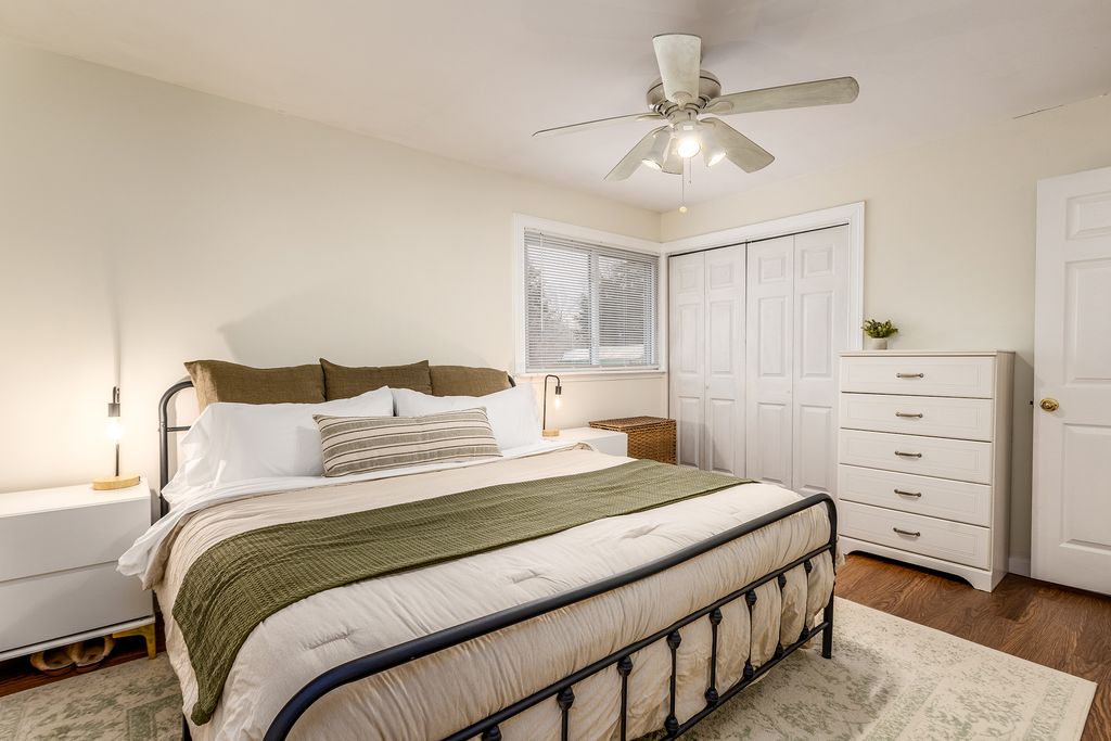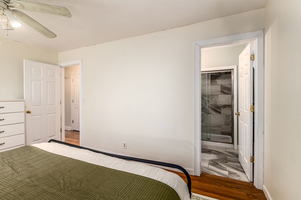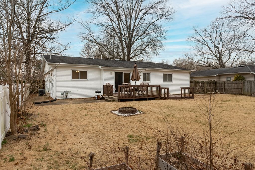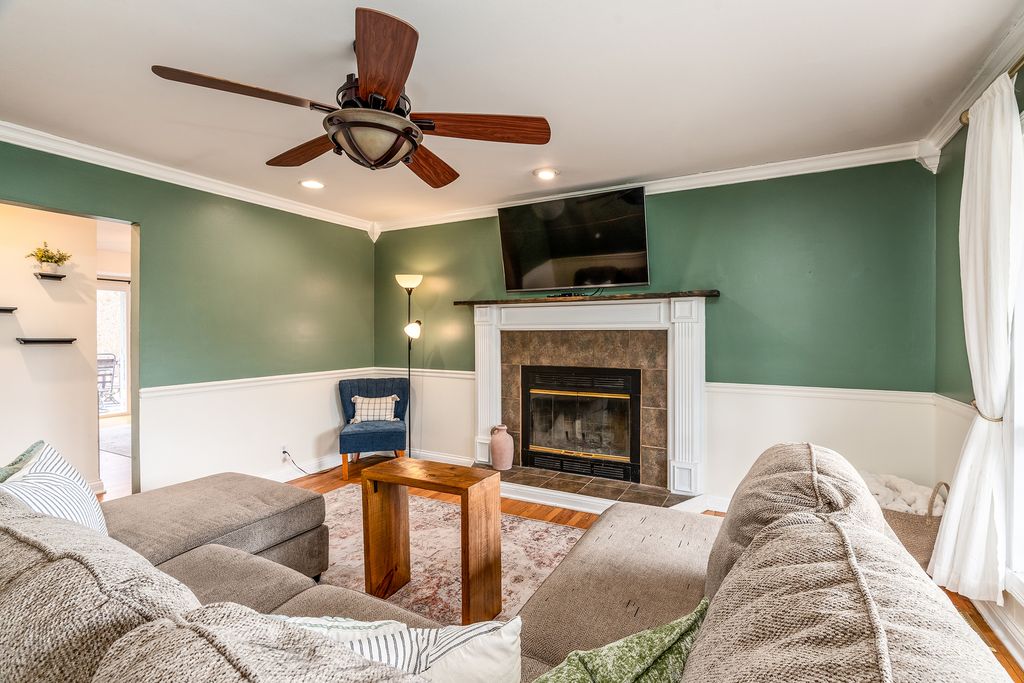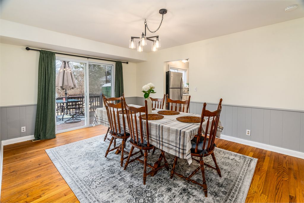 This stylishly updated 3-bedroom, 2-bath ranch blends classic comfort with modern design - tucked away on a private cul-de-sac for added peace and privacy. A rare find for a 1970s home, the spacious primary suite features a true full ensuite bath, offering privacy and convenience not often seen in homes of this era. The striking black-and-white exterior sets the tone for the clean, crisp interior, where thoughtful updates and warm brass finishes create a polished yet inviting feel throughout. The large kitchen is both functional and beautiful, complete with stainless steel appliances, abundant cabinetry, and a dedicated pantry. A separate laundry area with a ventless dryer adds everyday ease. Enjoy gathering in the separate dining room with direct access to the deck and expansive fenced backyard-perfect for entertaining, pets, or play. The living room offers a cozy wood-burning fireplace and abundant windows that fill the space with natural light. A covered front porch provides a welcoming spot to relax and unwind. With modern style, functional updates, and a generous outdoor space, this move-in-ready ranch offers comfort and character in one appealing package.
