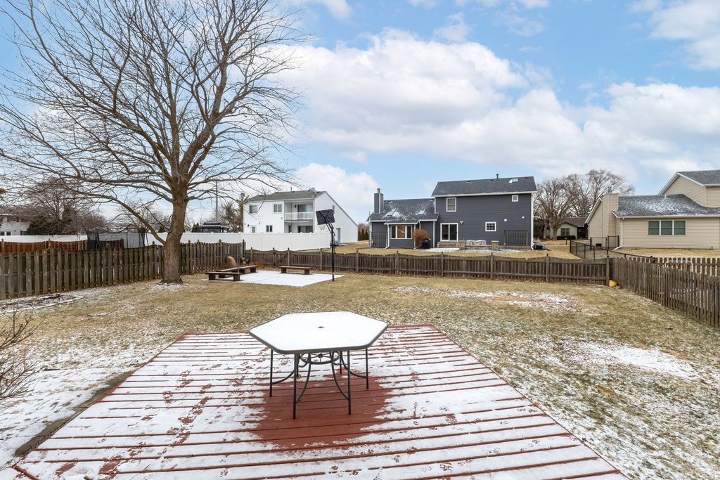 Welcome to this beautifully updated, move-in ready home offering nearly 2,500 sq ft of finished living space in a desirable Bettendorf location. The main floor has been completely refreshed in 2024 with new LVP flooring, baseboards, and fresh paint throughout. You'll find a formal living room at the front of the home, a formal dining room currently used as a home office, and an updated kitchen featuring granite countertops and all new stainless steel appliances (2023). The kitchen opens to the informal dining area and inviting family room with built-in shelving and a wood-burning fireplace. A sliding glass door leads to a large deck overlooking the fully fenced, level backyard complete with a basketball court-perfect for outdoor enjoyment. Upstairs features 3 bedrooms, including a spacious primary bedroom with an updated en-suite bath; 2 additional bedrooms (new carpet in 2023) share a full bathroom. The finished basement adds a rec room and a 4th non-conforming bedroom currently used as a home gym, plus ample storage and laundry in the unfinished area. A 2-car attached garage and new outdoor lighting (October 2025) complete this impressive property. Roof and siding new in 2020. This home is truly move-in ready-schedule your private showing today and see all it has to offer!