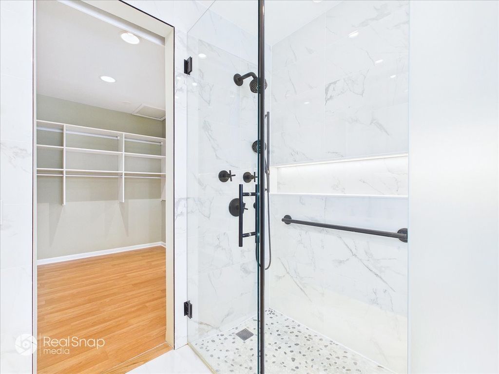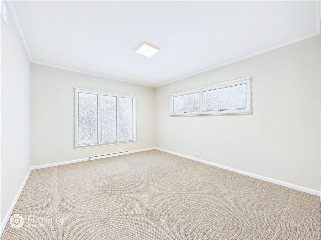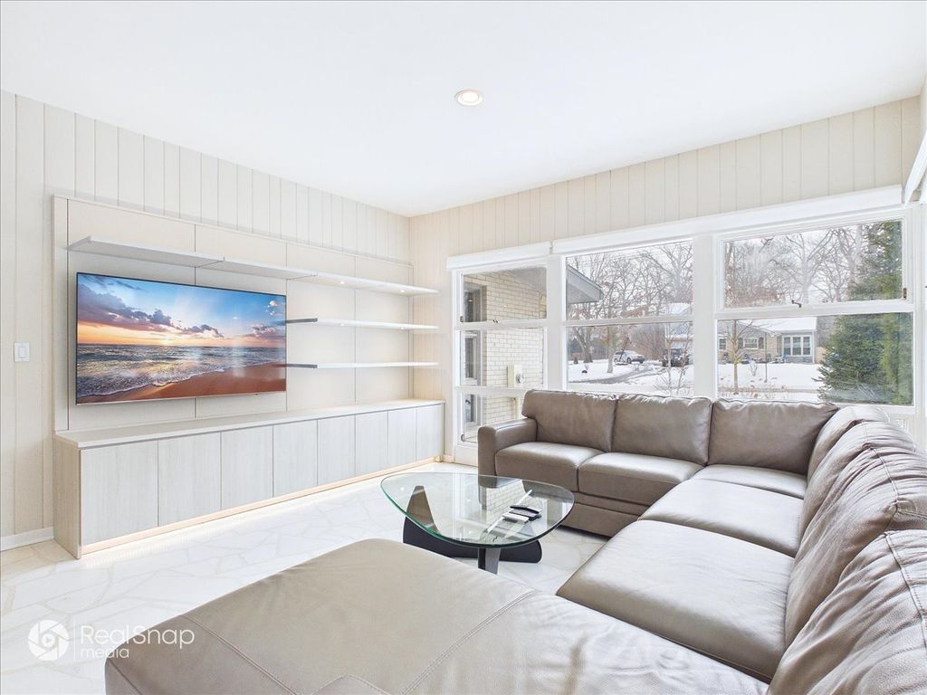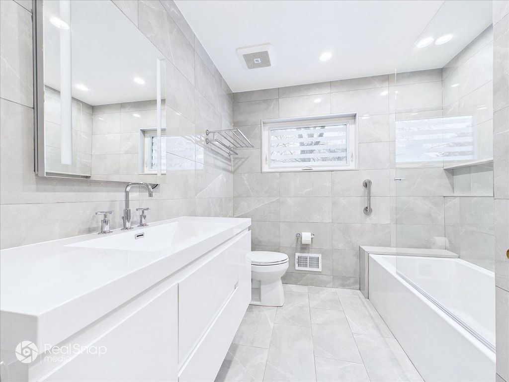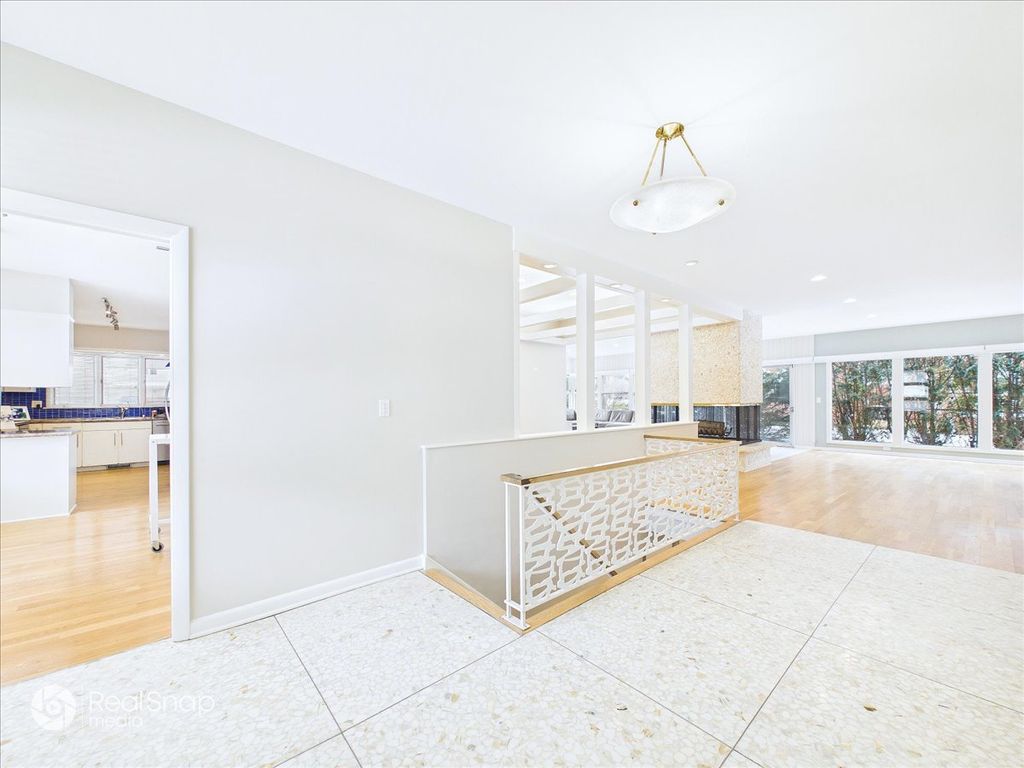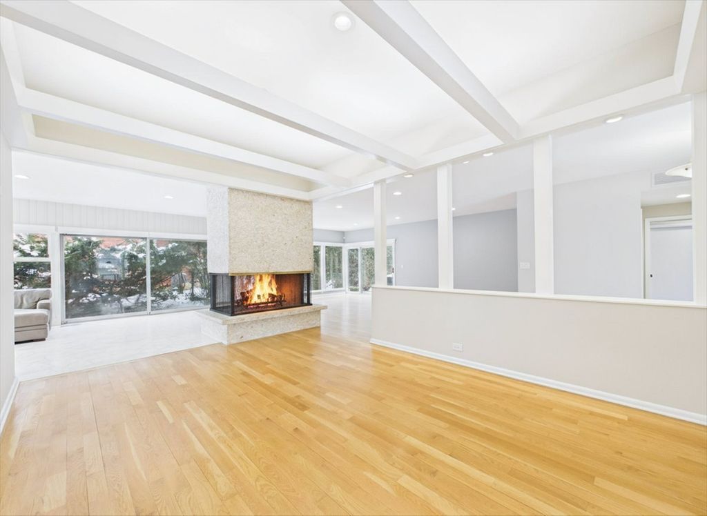 Hear the gentle rhythm of Lake Michigan from this impeccably maintained, rarely available mid-century modern ranch near the lake, set along prestigious Sheridan Road in East Highland Park, where refined luxury, privacy, and timeless design converge. Built in 1958 and still owned by the original family, the home was designed by architect Arnold Schaffner. Upon entry, classic terrazzo flooring sets the tone for the home's architectural character and leads into a flowing open layout ideal for both elegant entertaining and modern daily living. A striking four-sided fireplace, clad in exposed aggregate stone-the same stone featured in the foyer terrazzo-anchors the living, dining, and family rooms. The main level offers four bedrooms and 2.1 baths, plus an additional full bath in the finished basement. Generously scaled rooms with high ceilings transition seamlessly from one space to the next, while the dining room features an even higher ceiling with indirect lighting tucked into exposed beams. Carrara marble floors imported from Italy add understated sophistication to the main living areas. A custom wall unit with integrated uplighting and downlighting, along with motorized window treatments in the family and living rooms, enhances comfort and convenience. Recently renovated bathrooms are beautifully appointed, including a spa-like primary bath with marble finishes, heated floors, and high-end fixtures, as well as a powder room featuring Carrara marble wainscoting and countertop. The thoughtfully finished basement, with porcelain plank tile flooring, provides expansive additional living space ideal for gatherings, recreation, or a private retreat. Outdoors, professionally designed landscaping by Mariani Landscape-with mature plantings, uplighting, and downlighting-creates a tranquil, resort-like setting perfect for indoor-outdoor entertaining. Pride of ownership is evident throughout, with major improvements including a new roof, new gutters with leaf filters and heating cables, new asphalt driveway, new front sidewalk, copper plumbing, a new concrete garage floor, and a new garage door designed to echo the rhythm of the adjacent family room windows. Located within the award-winning Ravinia Elementary and Highland Park High School districts, and just a short walk to the Ravinia Shopping District, Rosewood Beach, and the Ravinia Festival, this distinguished Sheridan Road home offers a rare opportunity for sophisticated, walkable living just moments from Lake Michigan.