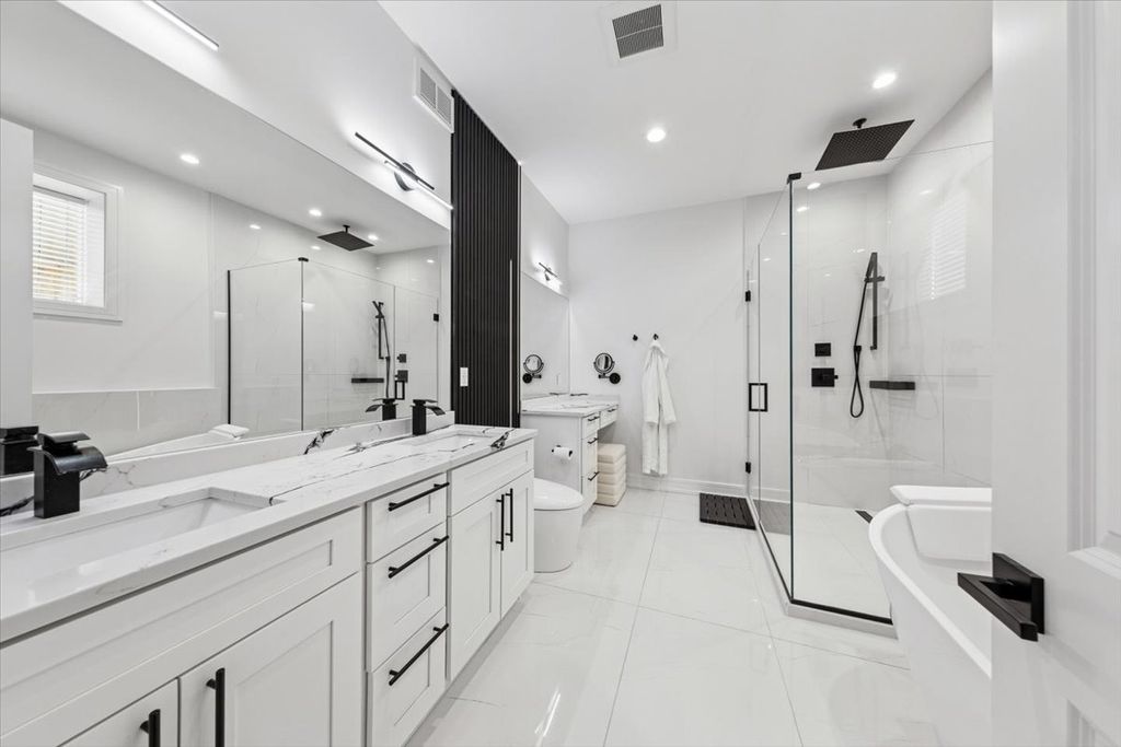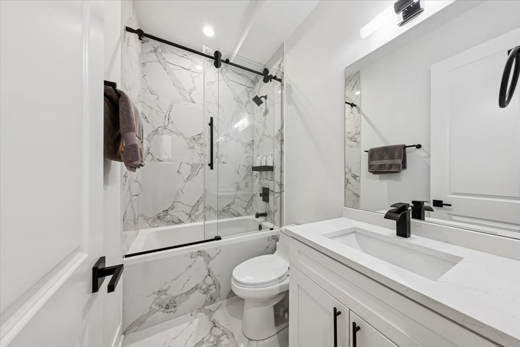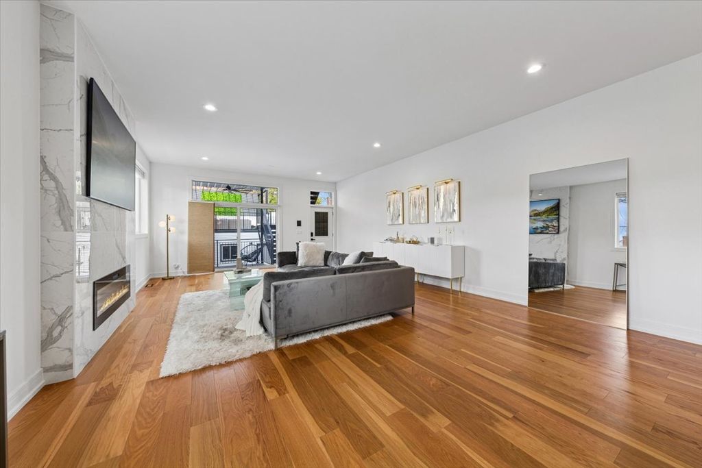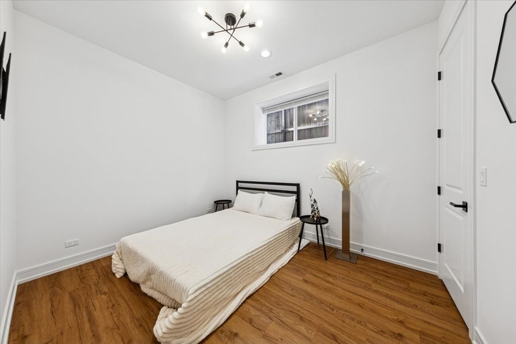 Discover the perfect blend of modern luxury and everyday comfort in this beautifully designed four-bedroom, three-bathroom duplex down, ideally located near the 606 and the heart of Chicago's most vibrant neighborhoods. The main level impresses with soaring 10-foot ceilings, multiple living areas with fireplaces, and a showstopping 10-foot kitchen island wrapped in quartz. The gourmet kitchen features premium stainless steel appliances and sleek finishes throughout. A full bath and a versatile bedroom or office on this level offer flexibility for guests or remote work. White oak hardwood floors and recessed lighting add warmth and sophistication to every space. The lower level reveals a serene primary suite with heated porcelain tile floors, a spa-inspired bath featuring a soaking tub, custom glass shower doors, and a generous walk-in closet. Two additional bedrooms, a full bath, and abundant storage complete the level. Enjoy exceptional outdoor living with a covered rear deck featuring a built-in grill station and an upgraded garage rooftop deck - perfect for entertaining or unwinding with city views. Recent upgrades include Tesla charger, composite decking, built-in water filtration system, motorized blinds, designer lighting, custom closets, smart bidet toilet, an integrated sound system and more. Located just steps from the 606 trail, Humboldt Park, Palmer Square, local restaurants, nightlife, and boutique shops, with easy access to downtown - this home truly has it all.