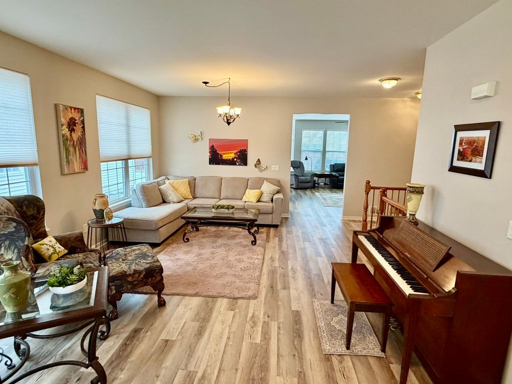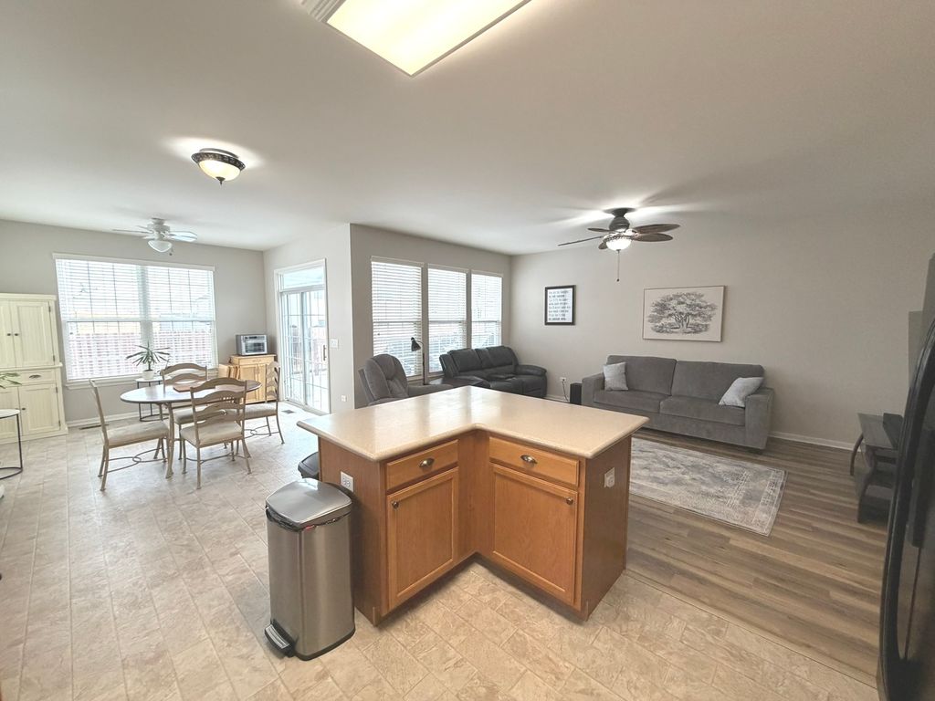 Price Adjustment on this Delightful, sun-filled ranch with a finished basement nestled in sought-after Carillon Lakes, a 55+ community. The inviting home offers three generously sized bedrooms plus a charming den/office with French doors, complemented by fresh, neutral paint and an abundance of natural light throughout. The warm, welcoming kitchen anchors the home with Corian countertops, a spacious center island, ample cabinetry, and newer black appliances, flowing seamlessly into the family room and dining area. Durable vinyl wood-style plank flooring adds both beauty and resilience, while brand-new bedroom carpet brings cozy comfort to the sleeping spaces. The expansive primary suite features a large walk-in closet and a spa-like bath with a medical jacuzzi tub. The finished lower level provides exceptional versatility, ideal as a private in-law suite, complete with a bedroom, full bath, family room, kitchenette, walk-in closet, and remarkable storage throughout. Additional highlights include handicap accessibility, oversized closets, extensive storage areas, and thoughtfully retrofitted window wells for safety. Outdoor living shines with a large composite deck and a welcoming front porch perfect for morning coffee. Major updates offer peace of mind, including recently replaced furnace, air conditioner, roof, sump pump, and water heater, along with a brand-new garage door and all-new window screens. Comfortable, polished, and meticulously maintained-this home is truly move-in ready and full of possibility. Carillon Lakes offers an exceptional lifestyle with a free three-hole golf course, a beautifully appointed clubhouse with full amenities, indoor and outdoor pools, tennis and pickleball courts, and a well-equipped fitness center complete with a hot tub. The community also features large fishing lakes, scenic walking paths, and a full calendar of engaging events held at the clubhouse and throughout the neighborhood. Whether you're looking to stay active and social or enjoy a more relaxed pace, Carillon Lakes is a place where you can be as busy or as laid-back as you choose.