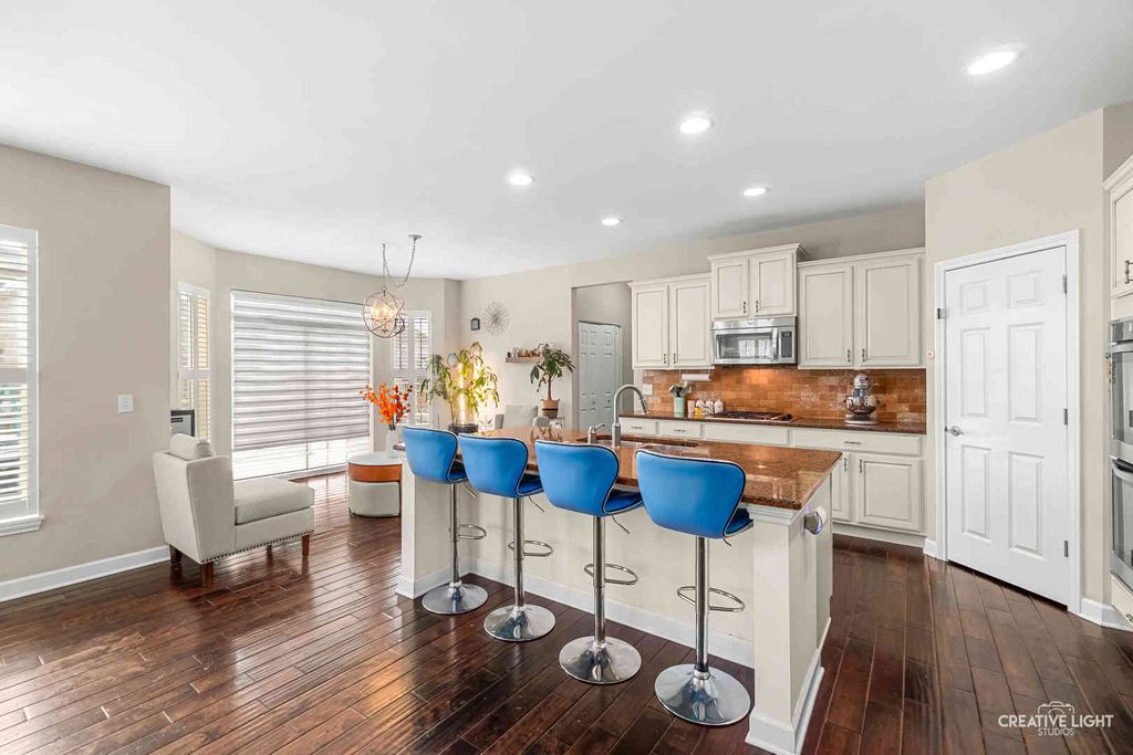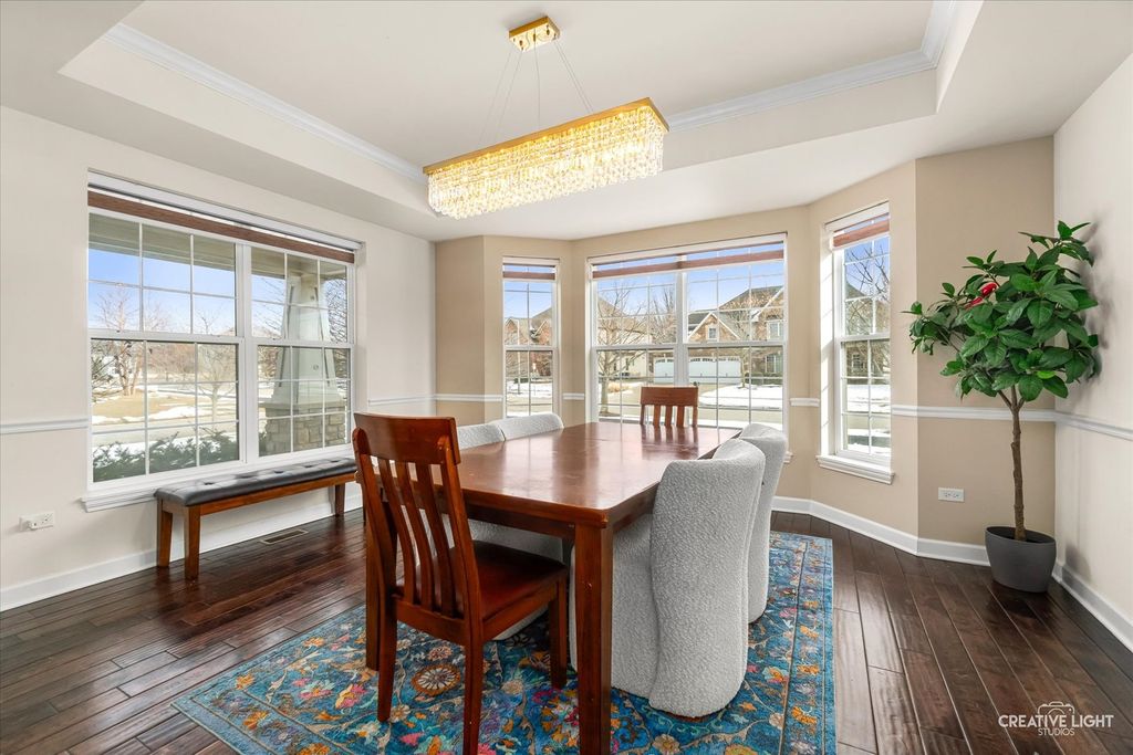 In the sought-after "Autumn Gate at SOUTHBURY" & Poised on Over 1/3 Acre NE Facing Lot w/Fenced Backyard! This exceptional 4-bedroom, 2.5-bath traditional 2-Story home offers over 3,300 sq ft of beautifully finished living space This home blends timeless design with modern comfort. Enjoy a gourmet kitchen with granite countertops, double oven, a walk-in pantry, and large island that flows seamlessly into the open-concept family room with fireplace. A dedicated 1st floor home office, elegant dining room with tray ceiling and crown moulding, and dramatic 2-story entry foyer add to the home's charm. Upstairs, find a generous 20'X17' loft/bonus room perfect for play or media room. The fully fenced backyard features a stamped concrete patio, seating wall, and swing set-perfect for outdoor gatherings. Enjoy the convenience of a tandem 3-car garage and mudroom/laundry drop area. Located in a fantastic clubhouse community with pools, near parks, shopping, and within walking distance to the Jr. High School. This is the lifestyle upgrade you've been waiting for in Oswego's premier neighborhood!