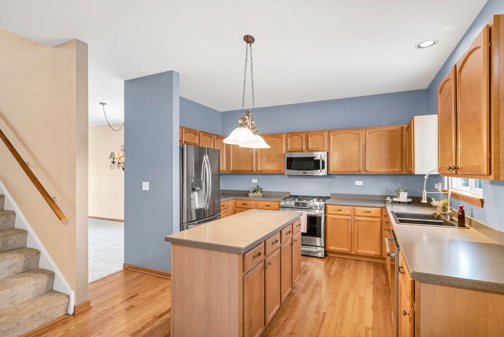 Exquisite home in the highly sought-after St. Charles School District, nestled on a quiet cul-de-sac. This spacious residence offers 4 bedrooms, 2.1 baths, a loft, and a heated 2.1-car garage with spigot. The main level features a combined living and dining room. The kitchen includes newer stainless steel appliances and opens to the backyard through sliding glass doors with blinds enclosed between the glass, leading to a back deck and oversized, fenced yard, ideal for gatherings or relaxing outdoors. The oversized primary suite boasts a walk-in closet and a private bath with double sinks, a Jacuzzi tub, and a separate stand-alone shower. The fourth bedroom also includes a walk-in closet, and the second full bath features double sinks along with a walk-in soaking tub designed for safety, wellness, and everyday ease. The unfinished basement spans over 1,500 sq ft and includes a rough-in for an additional bathroom, offering endless potential for a recreation room, home gym, or additional living space. Recent updates include new carpet throughout, hardwood floors sanded and stained (2026), water heater (2022), HVAC (2022), garage door and opener (2022), windows (2001), siding and front door (2015), and fresh paint in several rooms. Located in the highly acclaimed St. Charles school district, River Ridge is also close to excellent shopping, cultural options, and recreation.