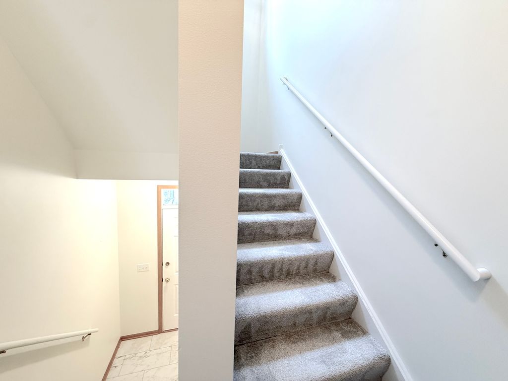 Located in the Pines of Lakemoor, this private-entry townhome offers a desirable setting with walking trails, ponds, and peaceful green spaces just steps away, plus the added convenience of Starbucks, grocery stores, and everyday shopping close by. An attached 2-car garage with bonus storage and direct interior access adds everyday comfort-especially during inclement weather. Inside, the sun-filled living room flows seamlessly into the kitchen featuring generous counter space and room for a future island, open to the dining area with sliding doors leading to a private balcony. A well-placed powder room completes the main level. Upstairs, two bedrooms each enjoy direct access to a full bath, including a spacious primary bedroom with a large walk-in closet. A convenient second-floor laundry is centrally located between the bedrooms. Major mechanical updates provide valuable peace of mind, with the furnace, air conditioning, and hot water heater all replaced in 2018. FHA approved and truly move-in ready with all appliances included-ideal for a quick close and easy living.
