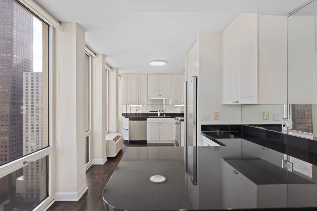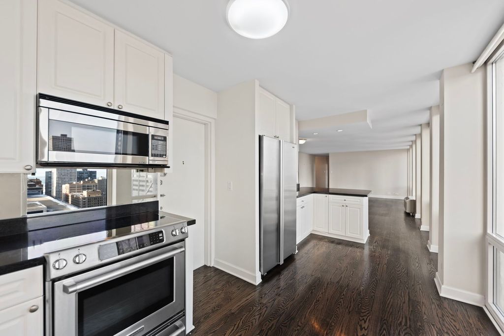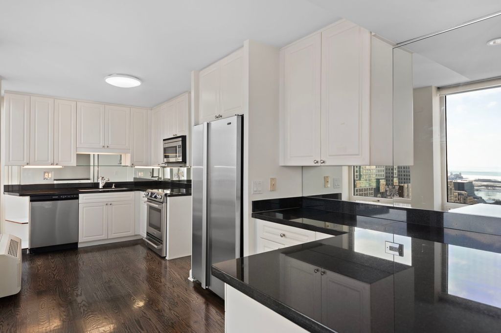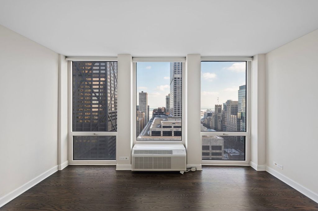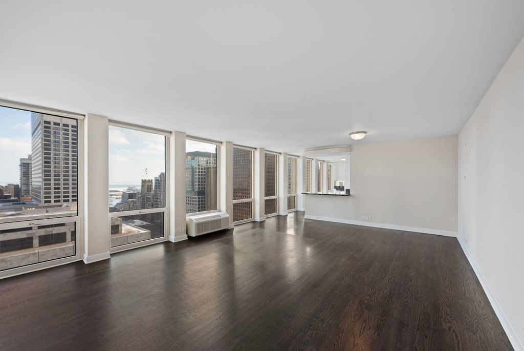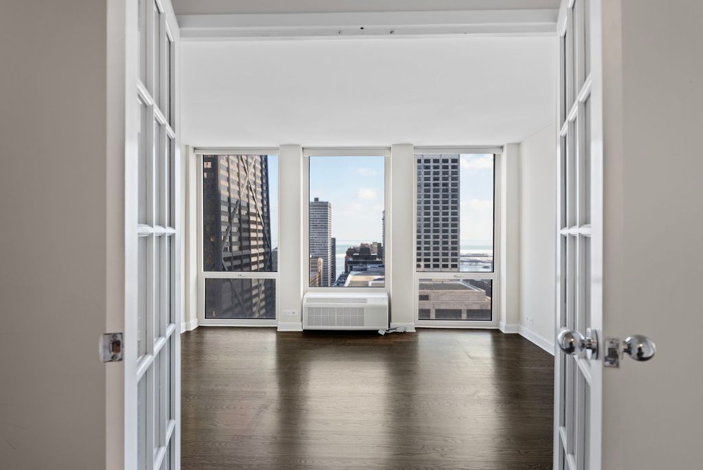 Spectacular 30th-floor vistas of Lake Michigan sunrises and the city skyline define this expansive 1,425 square foot Gold Coast retreat. Take in iconic landmarks including the historic Water Tower and the illuminated Palmolive Building through 16 dramatic floor-to-ceiling windows. This home features rich solid oak floors in a custom Jacobean stain and a grand foyer with elegant French doors leading to a king-sized second bedroom or executive office. The open-concept living and dining area provides a perfect backdrop for entertaining, complemented by a modern kitchen with black granite counters and stainless appliances. Peace of mind is provided by four recently updated Zoneline GE HVAC units. This residence is perfectly maintained and move-in ready today, yet it offers a prime opportunity to bring your custom cosmetic visions to a high-floor space. Enjoy seamless modern living with an Eero mesh Wi-Fi system delivering speeds exceeding 500mb and TiVo with premium movie channels included. The building offers an array of five-star amenities including a friendly 24-hour door staff, a 24-hour fitness center, and a heated outdoor west-facing pool that basks in afternoon sunlight. Residents also enjoy three sundecks with ten professional grills, a business conference room, a hospitality suite with an integrated sound system, and an Amazon package delivery system. An in-unit laundry closet with extra storage and an assigned storage cage are included, with deeded parking available for purchase or lease. Located just steps from Michigan Avenue luxury shopping and Oak Street Beach, this condominium offers the perfect blend of sophistication and panoramic city views.