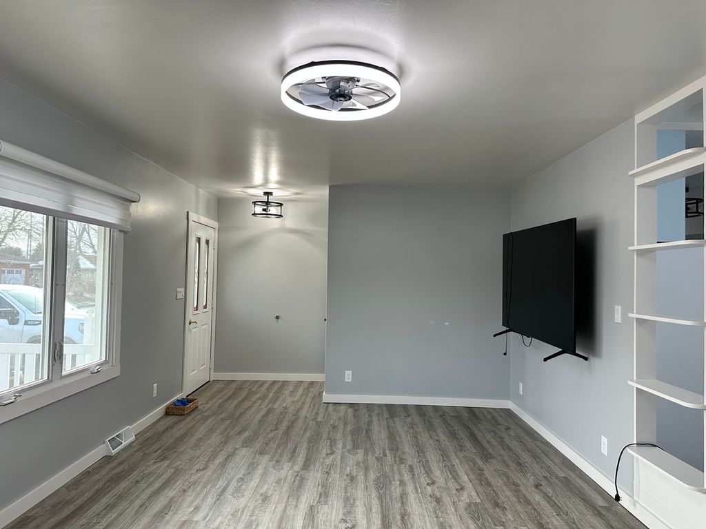 Very comfortable, move in ready home with many updates. This home is so nice and clean and ready for new owners. 2 bedrooms on the main floor, plus a garage converted into a bedroom make this a 3 bedroom home. This bedroom could also be converted back to a garage or made into a family room. Many updates in 2025 include new gas stove/oven, dishwasher, all new HVAC system, plus main floor bathroom has new plumbing and tub/shower surround. New flooring in the living room and bedroom. A remodel was started in the basement with a quality egress window added and 2x4 walls in place. The basement is ready for your finishing touches. Basement also includes much storage, laundry and bath. TV stays in the living room and all the blinds including motorized shades are an additional nice feature. Also has a large backyard with cement patio for the fire pit.