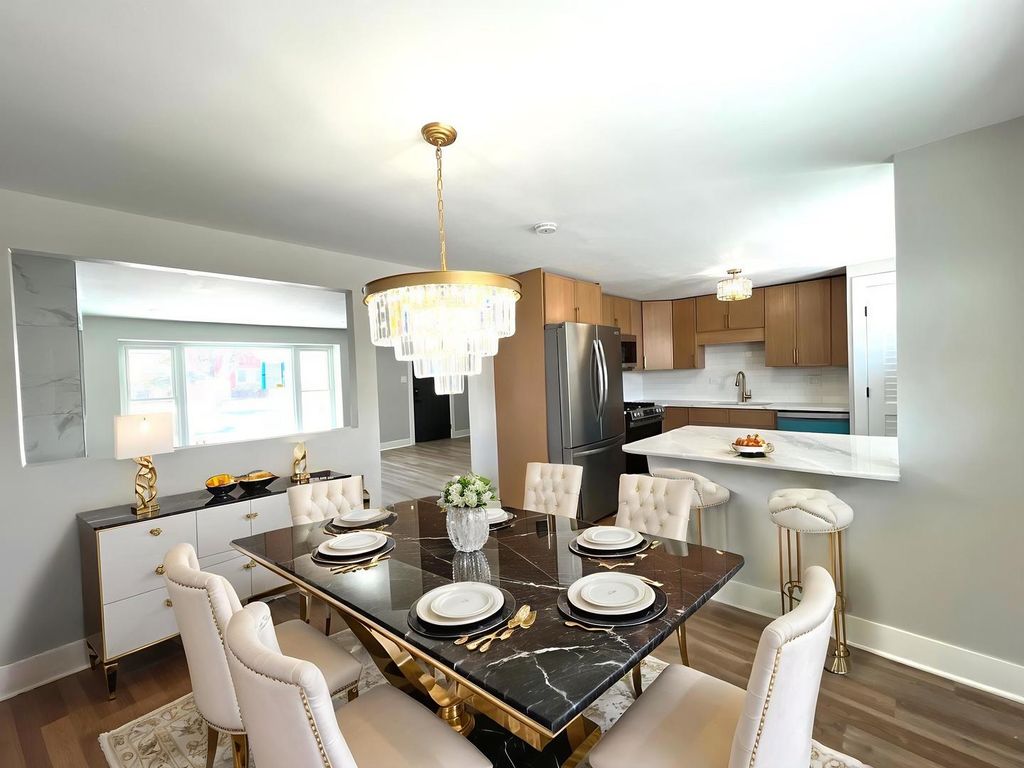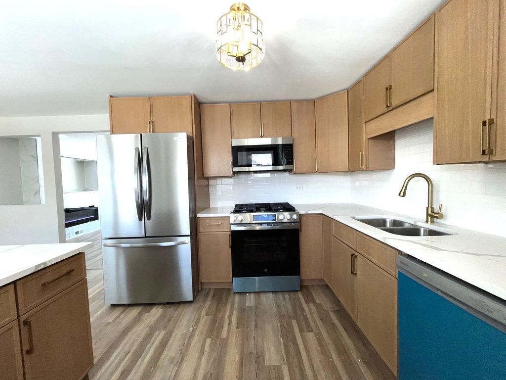 Updated 2-story home with 4 bedrooms and 2 full baths, including a primary suite. Features a long driveway with 2-car garage. Newly renovated kitchen offers sleek cabinetry, quartz countertops, gold finishes, and brand-new GE stainless steel appliances. Bright, open living areas and updated bathrooms with teak vanities and modern tilework. Move-in ready. Be sure to check out the virtual tour. Must call before showing to disable dispatch enabled security system. PLEASE NOTE PROPERTY HAS NO HOME OWNER EXEMPTION ON TAXES AND WOULD LOWER TAXES IF HOME OWNERS PRIMARY RESIDENCE.