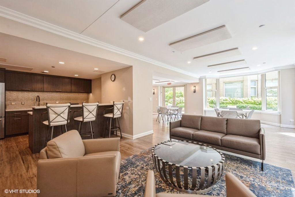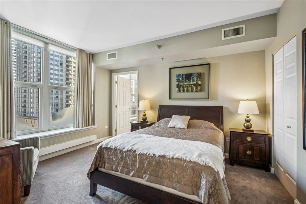 Welcome to this gracious, light and airy, split two-bedrooms/two-bathroom floorplan at The Fordham. This luxury high rise is known for full-service amenities and exceptional service levels. The recently remodeled open kitchen seamlessly blends elegance with function. Calacatta-Venetian Gold Quartz countertops and a generously proportioned working island sweep across the space giving warmth and movement while natural light from surrounding windows bathes the space. Sleek stainless-steel appliances (Bosch dishwasher, GE refrigerator and oven) are integrated throughout lending a modern, polished edge that contrasts beautifully with the organic tones of the quartz. The open layout keeps sightlines unobstructed, allowing the kitchen to remain connected to the living space and beyond to grand cathedral architecture and north & east city views. The result is a space designed as much for gathering and conversation as it is for cooking. The primary suite offers an en-suite bathroom with a soaking tub, separate shower and marble surfaces. The second bedroom looks out to the balcony and is the perfect guest room or in-home office. Your private balcony is perfect for outdoor grilling, evening cocktails, morning coffee or just a respite from the city below. Beautifully maintained hard wood floors, abundant storage and in-unit laundry add to everyday convenience. The Fordham has 24-hour security, doorperson service, dry cleaning and a receiving room. Amenities to make your life more enjoyable include and outdoor garden and sundeck, wine cellar with private storage and lounge, a humidor room, indoor pool, fitness center, private theatre, spa room, hospitality room, dog run, bike room and more. Shop designer boutiques along the Magnificent Mile, dine at four-star restaurants, sample the exciting nightlife and take in the cultural venues you only find in a world-class city. A deeded parking space in the attached garage is INCLUDED in the price. Whether you are hosting guests or enjoying a quiet moment above the city, this home offers the perfect balance of vibrance and tranquility.