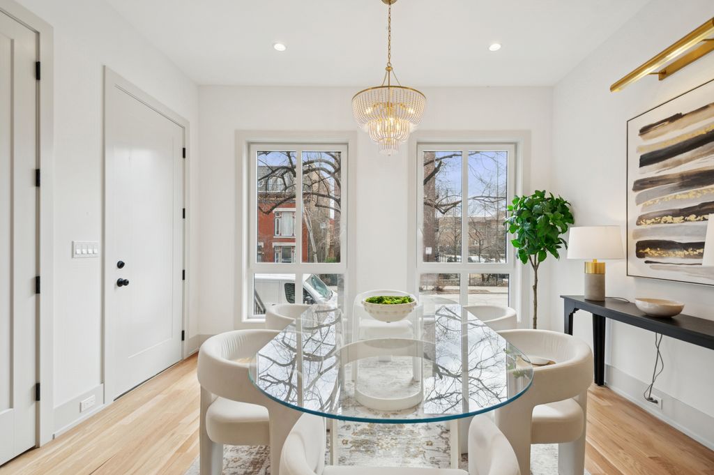 Modern Luxury in the Heart of Bucktown. We're proud to present a stunning duplex down featuring 3 bedrooms, 2.5 bathrooms, and a seamless blend of style, comfort, and functionality in one of Bucktown's most sought-after locations. Designed for effortless indoor-outdoor living, this home offers two private outdoor spaces: a huge covered rear deck off the dining room, and an exclusive rooftop deck over the garage. The spacious, open-concept living area features a custom fireplace, while the chef's kitchen anchors the space with custom cabinetry, quartz countertops, high-end appliances, and designer lighting-perfect for entertaining or relaxing at home. Perfectly located just steps from Holstein Park, with its open green space, pool, and playground, and offering convenient access to 90/94, the Blue Line, and the best of Damen, North, and Milwaukee Ave's dining and shopping, this home is the definition of elevated city living-where every detail is thoughtfully crafted for modern life.