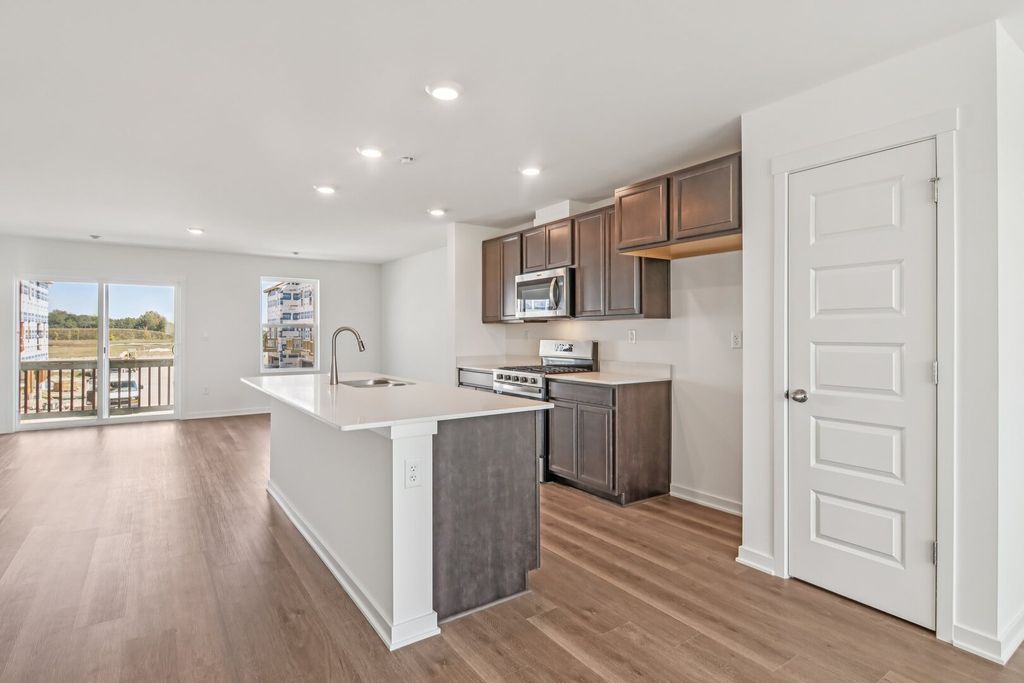 Find yourself at 911 Briar Glen Ct in Hampshire, Illinois, a beautiful new home in our Prairie Ridge community. This townhome will be ready for an early next year move in! Homesite includes a fully sodded yard that is maintained throughout the year as well as snow removal in the winter. This end unit Garfield townhome plan offers 1,756 square feet of living space with 3 bedrooms 2.5 baths, and a finished lower-level bonus room. Walking up to the main level, you will find this home's open concept living space. The expansive kitchen overlooks both the front dining and back great room areas. Step outside onto your balcony, relax and enjoy your morning coffee. Additionally, your kitchen features designer cabinetry, a spacious island with quartz countertops, and pantry. Walking upstairs, enjoy your private get away with your large primary bedroom on its own side of the second floor with a en-suite bathroom containing a raised dual quartz vanity and walk-in closet. Enjoy the convenience of a second-floor laundry, a second and third bedroom with a full second bath. Luxury vinyl plank flooring throughout the kitchen, bathrooms, and laundry. On the lower level you will find the finished bonus room with ample space for a home office, game room, or an additional hang out area. All Chicago homes include our America's Smart Home Technology. Photos are of similar home and model home. Actual home built may vary.
